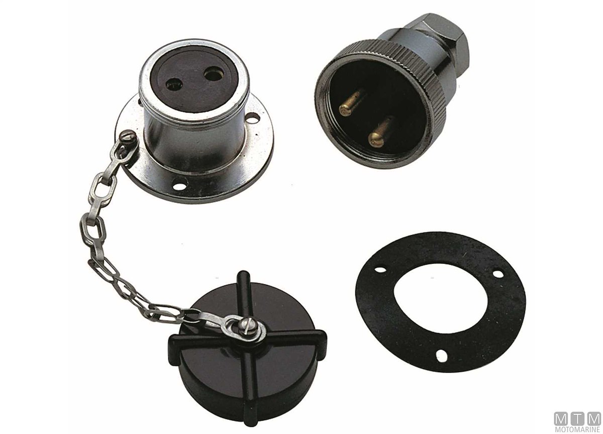 Presa e spina impermeabile da ponte per corrente continua max 5A in Ottone Cromato.