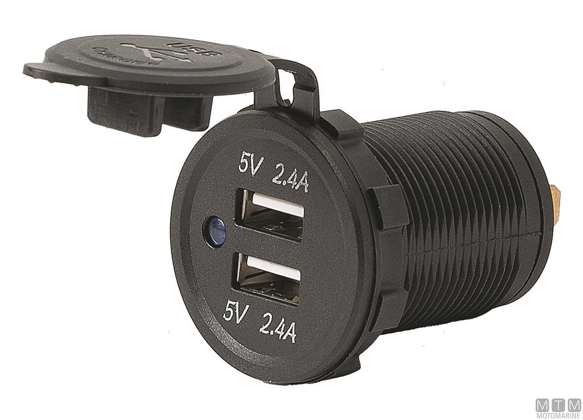 Doppia presa USB 2.4A misura socket completa di luce LED e cappuccio di protezione.
