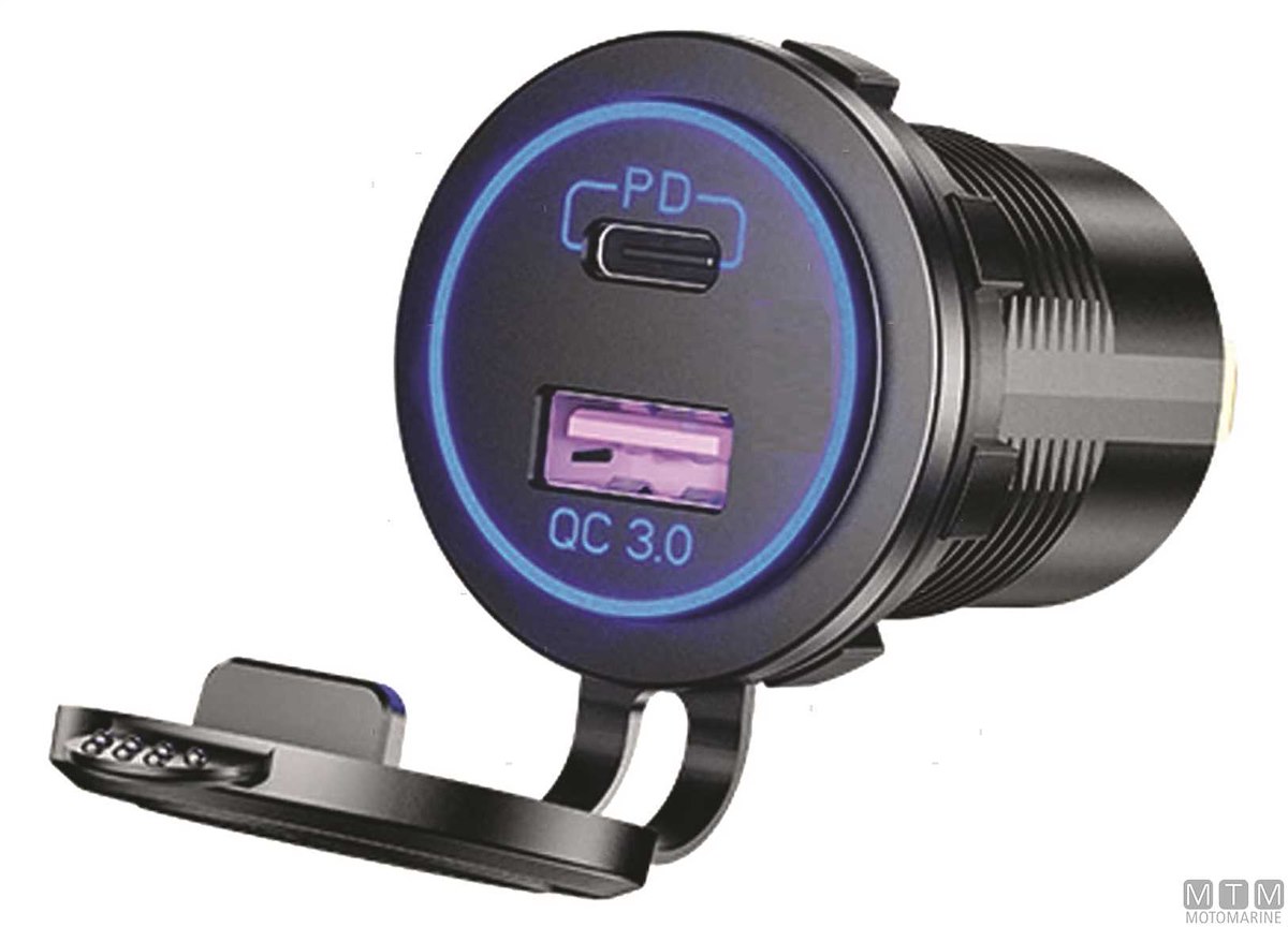Presa USB 3.0A e Type-C misura socket completa di luce LED blu e cappuccio di protezione.