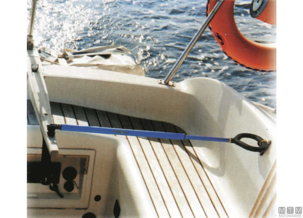Prolunga barra timone Friend che si regola con una semplice rotazione e resta bloccata nella posizione desiderata. Si può usare a mano libera o fissare al lato del pozzetto con il gancio in dotazione. Permette di regolare le vele o avere le mani libere senza perdere la rotta.