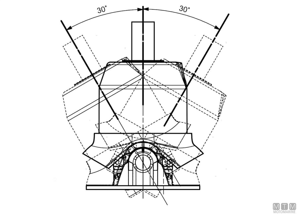 Il sistema di regolazione dell'angolo di guida X72 (Cod MTM 4655530) per pompe timoneria Nautech e SilverSteer permette 5 diverse posizioni di guida in un arco di 60°.