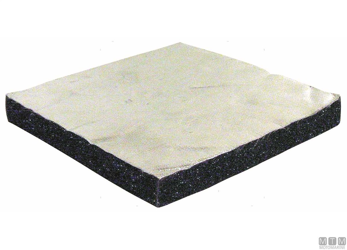 Fono/Termo isolante adesivo Fonox-FK. Isola da rumore (10 dB) e calore. Rivestimento con fibra di Vetro aluminizzata resistente ad alte temperature.Autoestinguente secondo norme UL94HF1