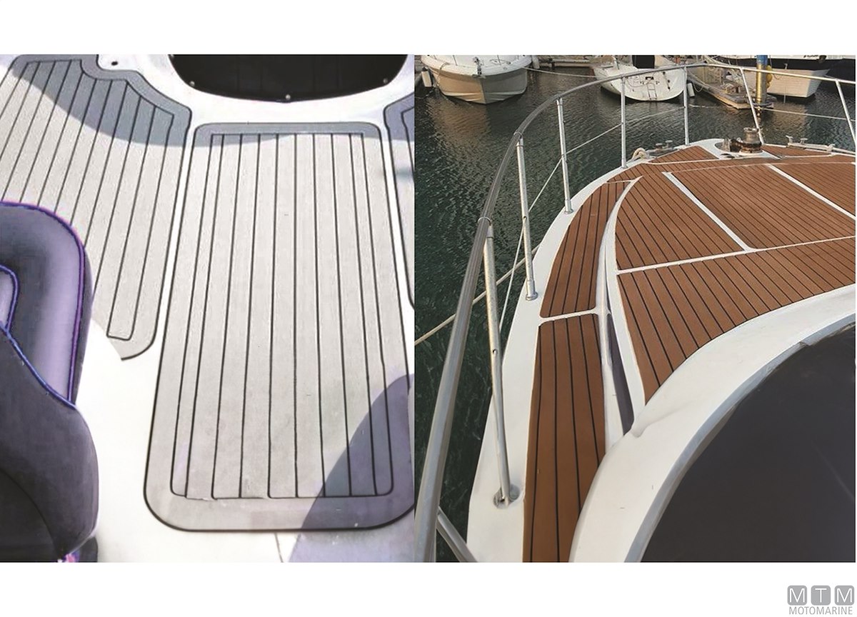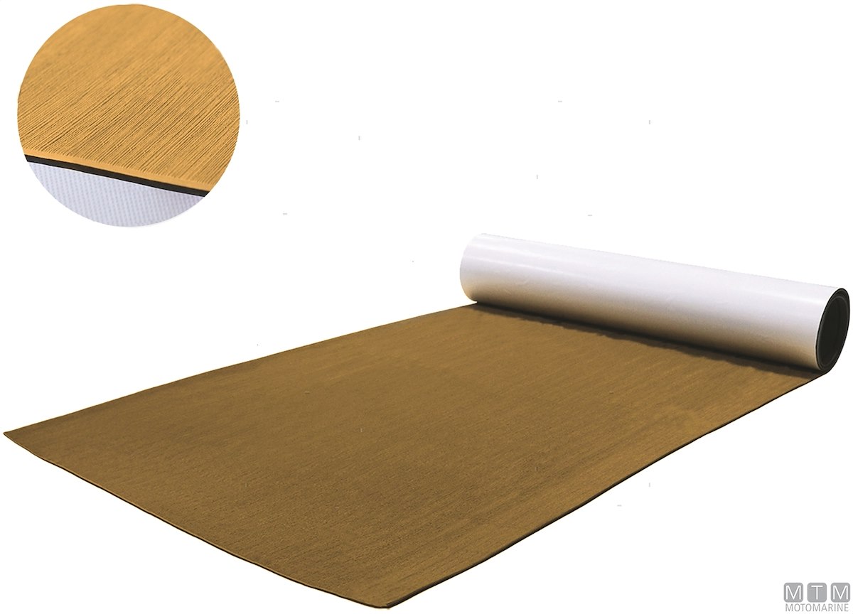 Rivestimento per ponte in EVA a cellula chiusa da sagomare e incollare sulla parte da rivestire. Ideale per ponti, pozzetti, fly bridge, passerelle, passaggi ed ingressi. Rende tutte le superfici calpestabili antisdrucciolo e rinnova l'imbarcazione donando l'aspetto di un rivestimento in Teak. Il materiale espanso a due strati con 6 mm di spessore garantisce un'equilibrio perfetto tra comfort e resistenza, molto facile da pulire, non assorbe le macchie.