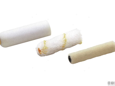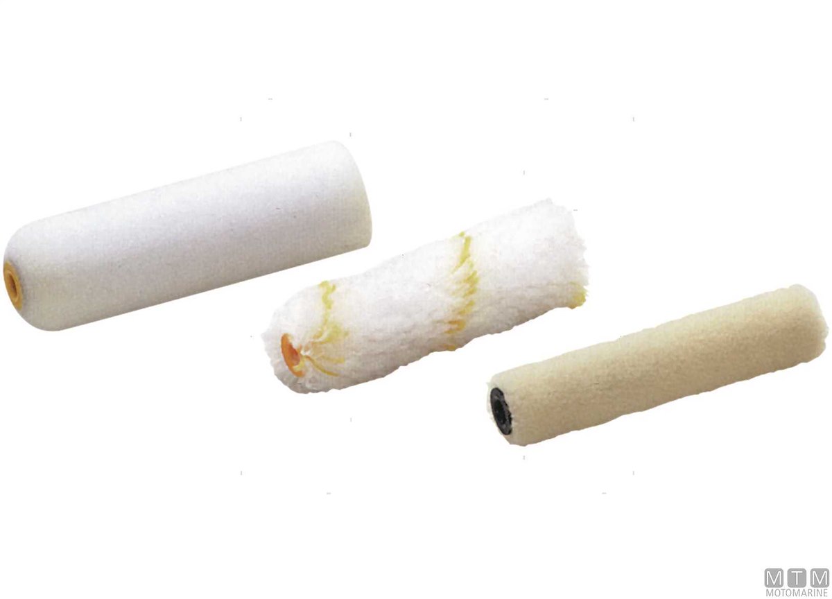 Rullini Bianchi riga Gialla in Perlon H pelo 12 mm per pitture e smalti (anche Nitro). - Rullini Bianchi in Spugna Moltoprene di altà qualità, porosità extrafine (no Nitro!). - Rullini Ecrù in tessuto Velour di alta qualità, adatti a tutti gli smalti (anche Nitro). - Rullini Bianchi in Microfibra per pitture fluide, alto potere assorbente. - Manici per rullini da 5, 10 e 15 cm.