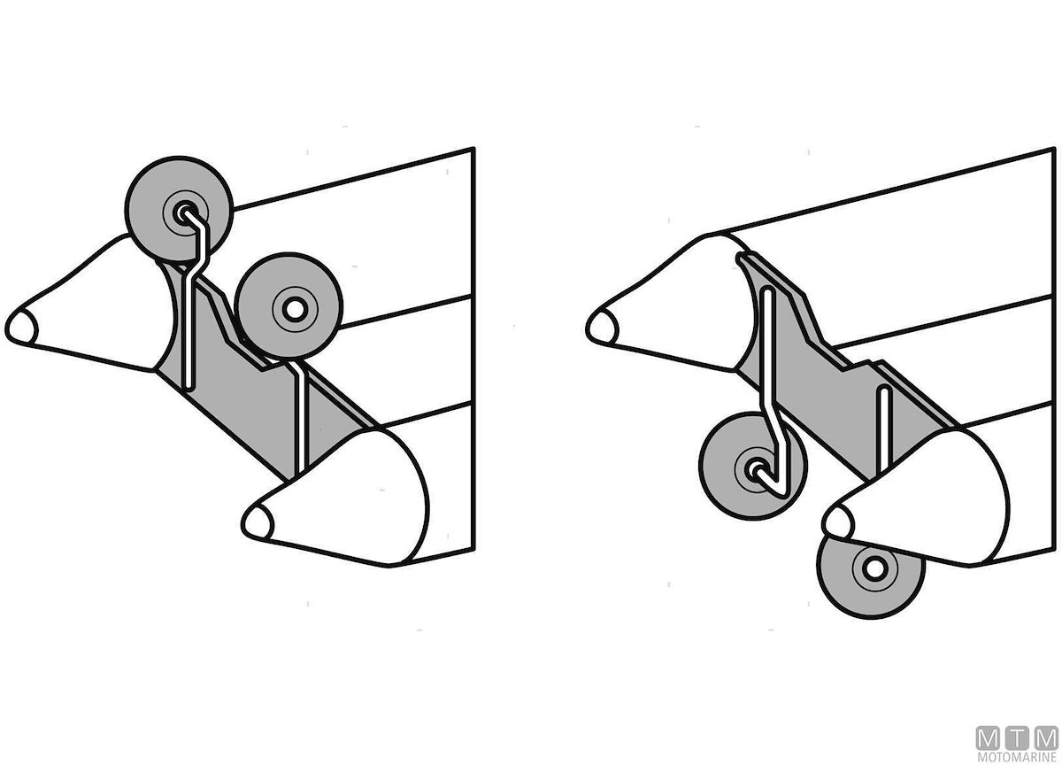 Ruote di poppa per alare canotti pneumatici e piccole imbarcazioni. Si sollevano o si tolgono durante la navigazione. Supporti e giunti in Acciaio Inox.