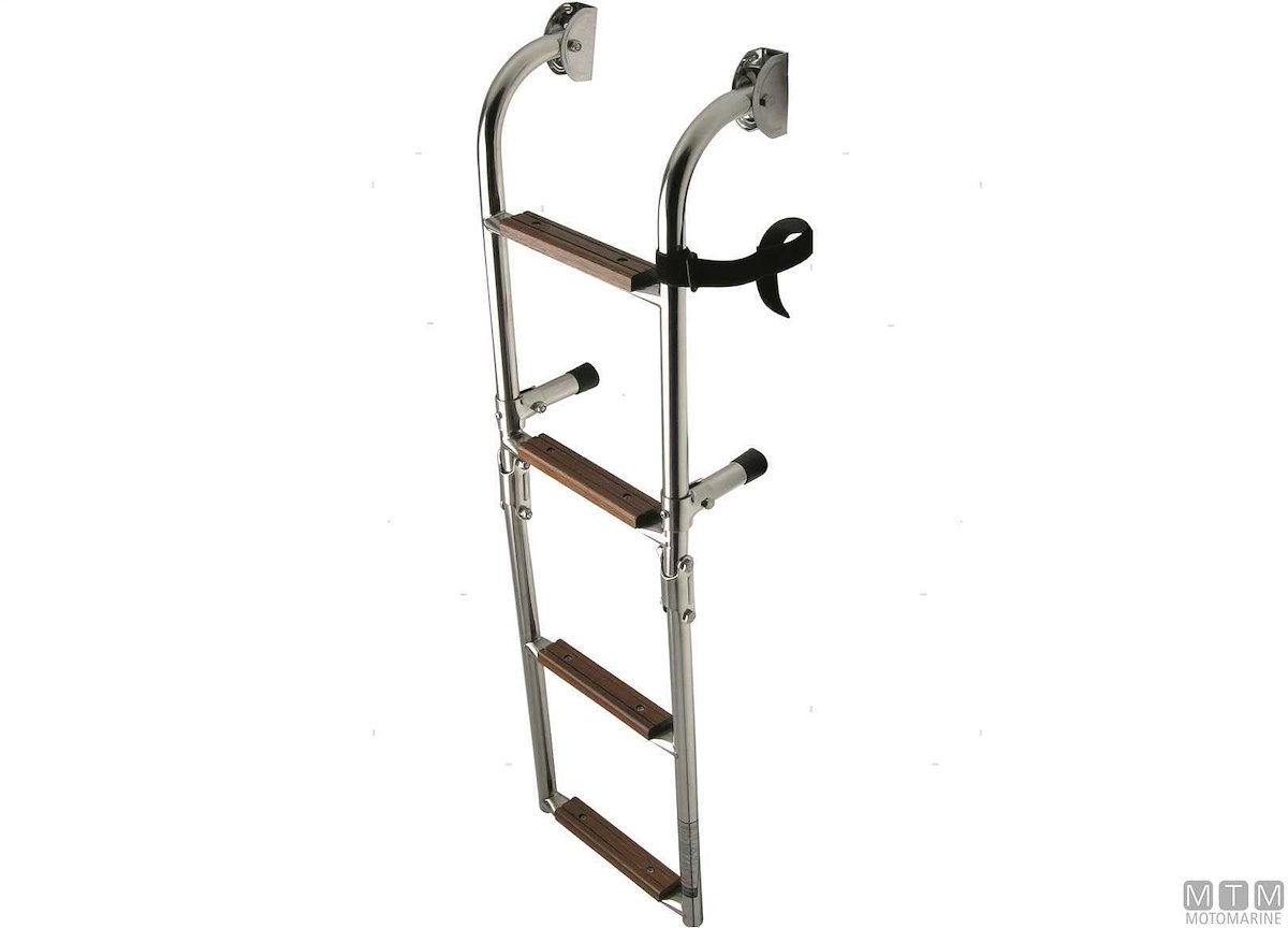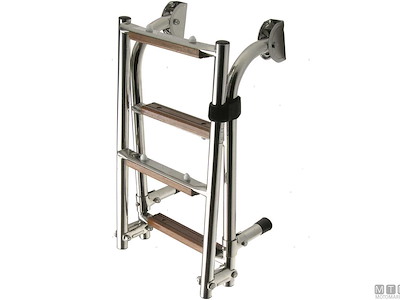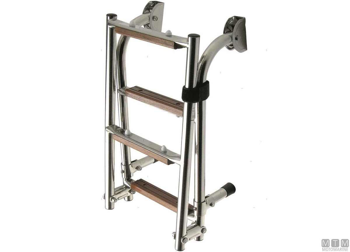 Scaletta pieghevole in Acciaio Inox con interasse standard. Battuta gradino rivestita in Legno trattato.