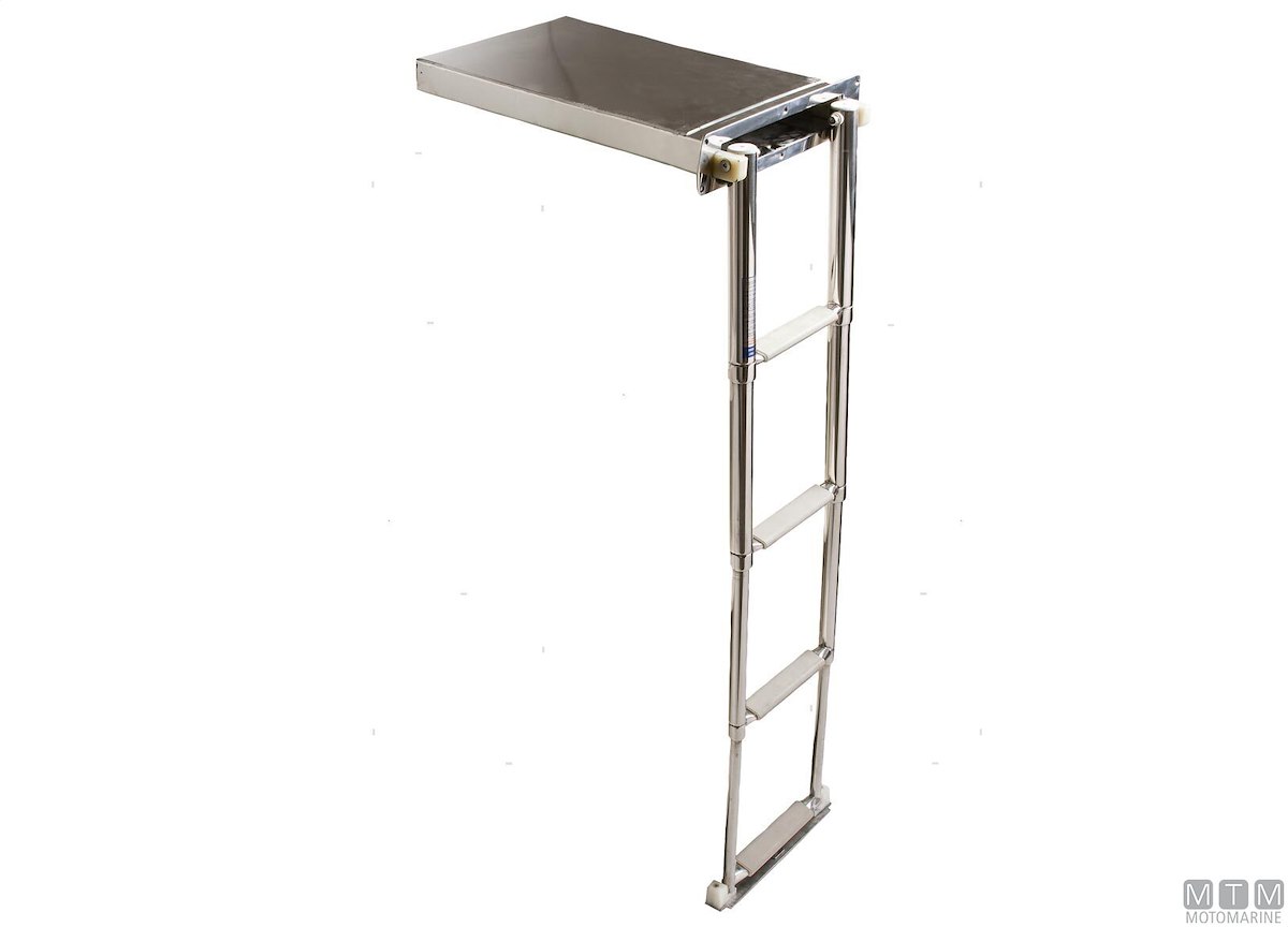 Scalette telescopiche a scomparsa in Acciaio Inox complete di scatola con guide. Montaggio a incasso su specchio di poppa. Dimensione scatola 33 x 46 x 4,6 cm (49 cm per la 4 gradini).
