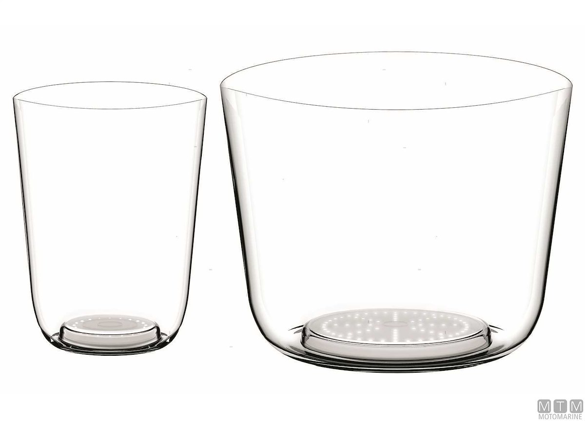 I secchielli Tonic Ice Bucket & LED Base e Tonic Ice Bowl & LED Base dalle linee semplici ma distintive reinventano lo stile di uno strumento ideale per il mondo della notte. Dotate di una base luminosa ricaricabile da introdurre nel fondo della base, le spumantiere donano luce alle bottiglie in esse contenute e all’ambiente che le circonda, diventando un oggetto utile ma fortemente riconoscitivo.
