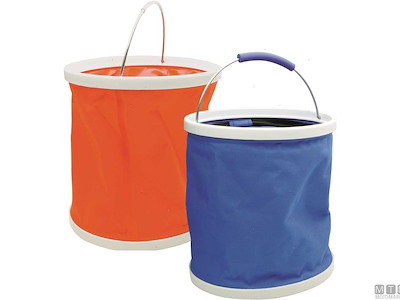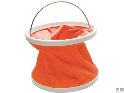 Secchio Pop-Up apribile a richiudibile per un ingombro minimo. Manico in Acciaio Inox, tessuto in Poliestere impermeabile con rinforzi.