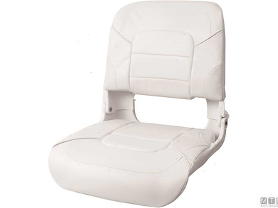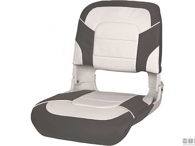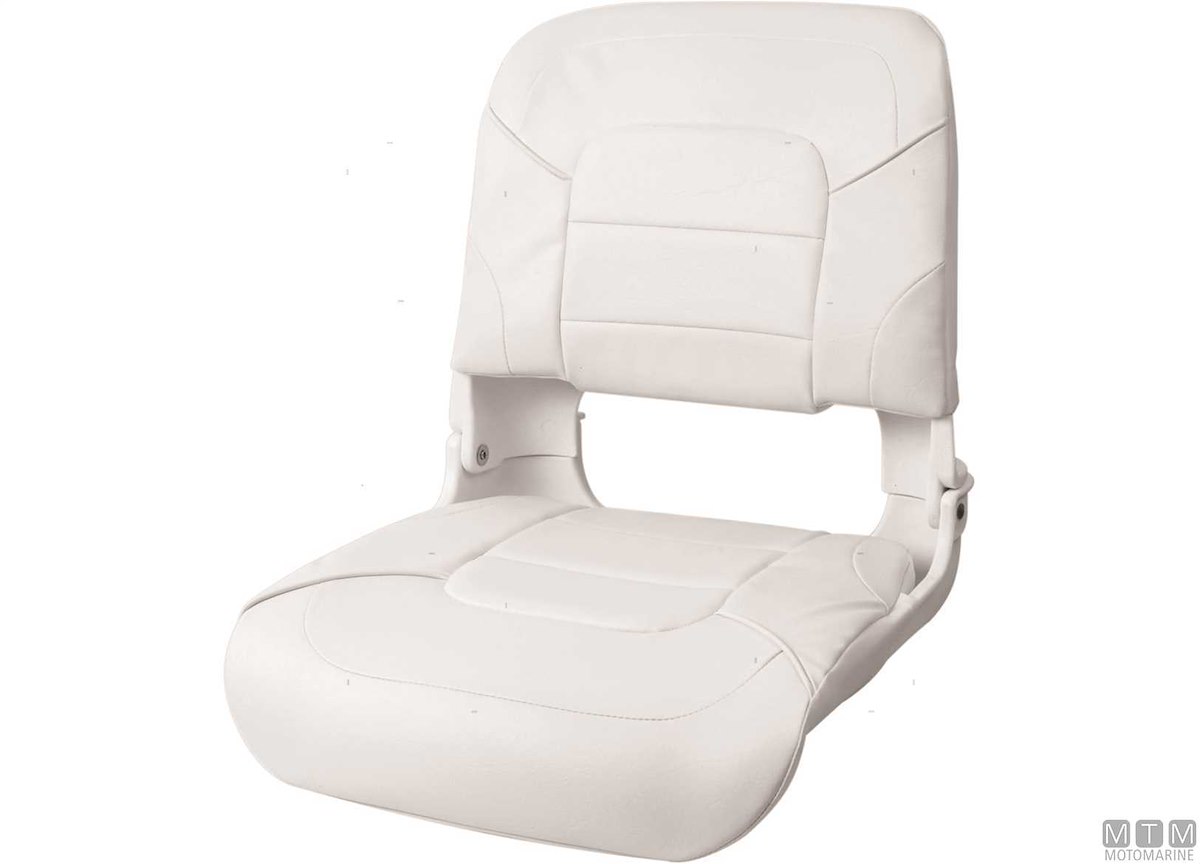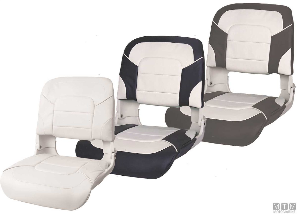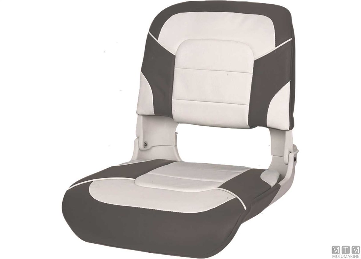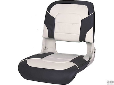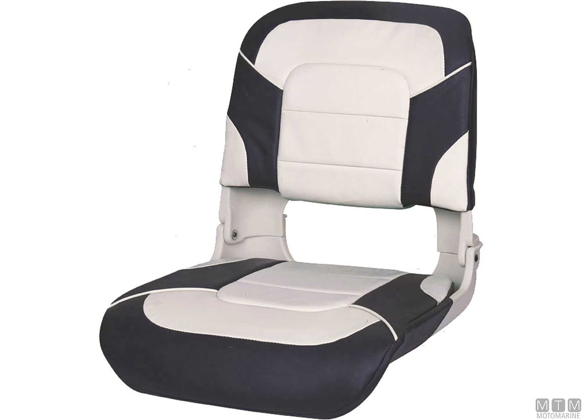 Sedile pieghevole con cuscineria rimovibile in Skay marino. Robusta scocca in Plastica rinforzata. Design ergonomico e confortevole, ideale per lunghe battute di pesca.