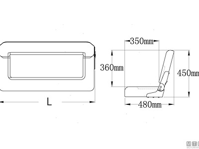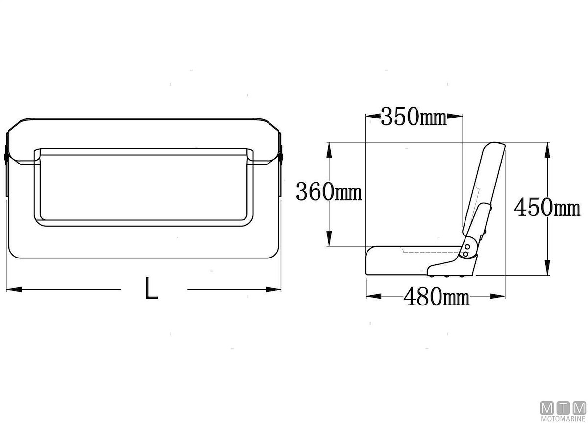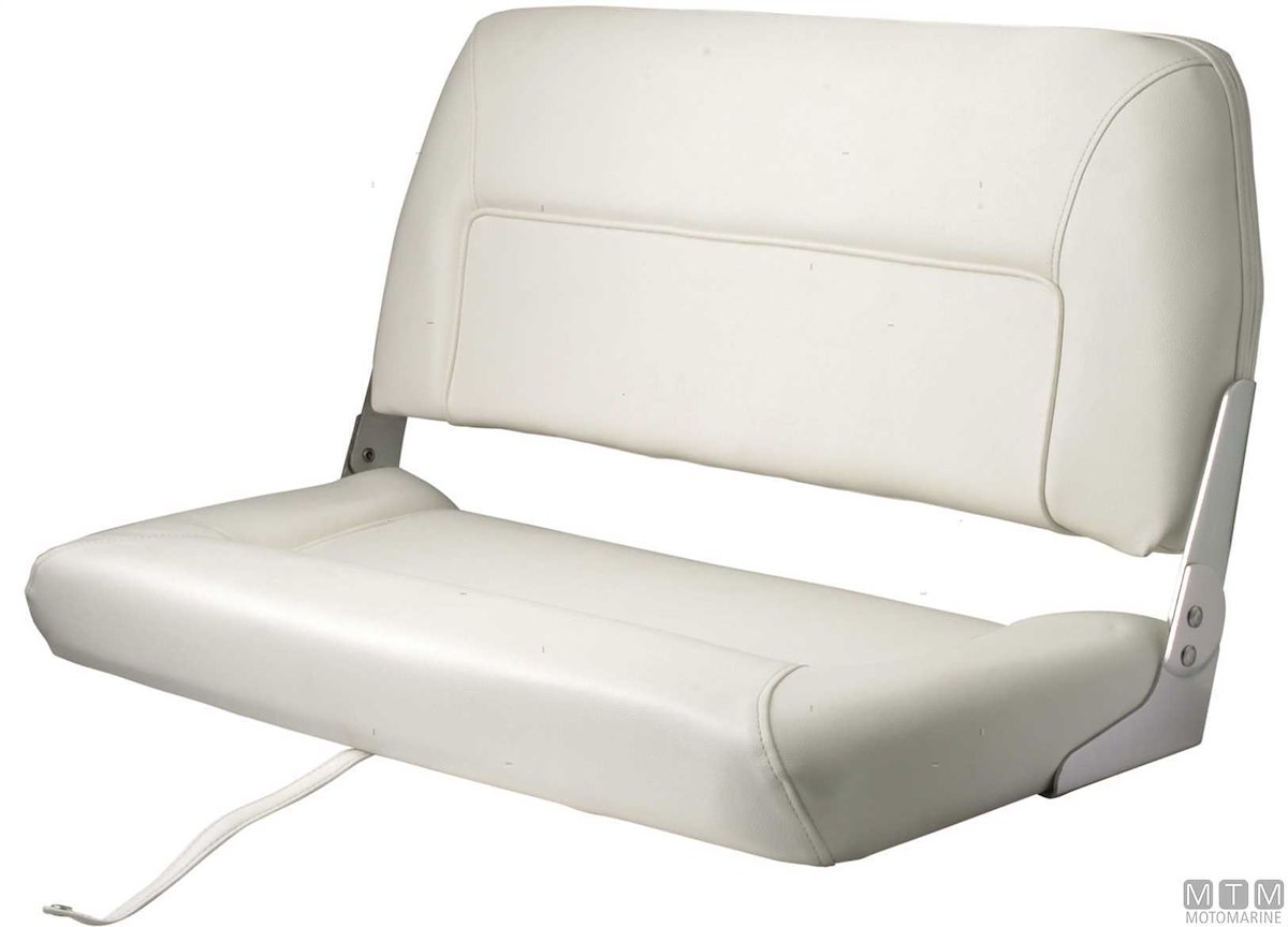 Sedile pieghevole imbottito per montaggio su panca. Rivestito in Skay marino.