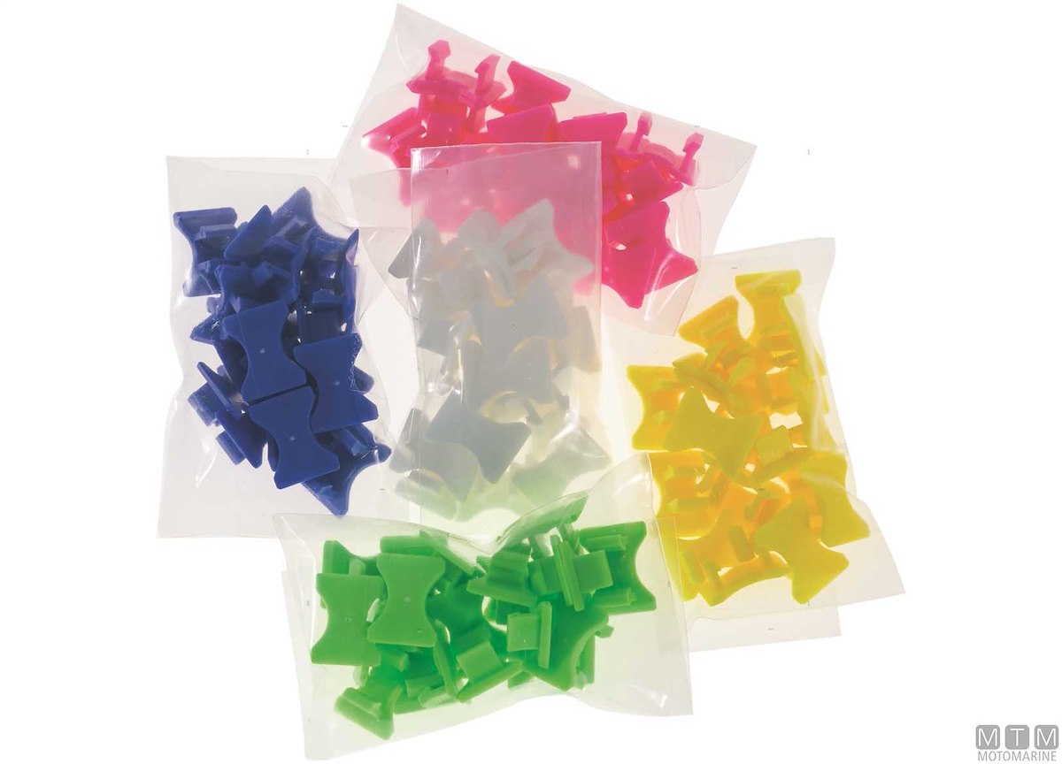 Segna catena in polimero antiurto appositamente progettato per uso marino. Si usano per marcare le varie lunghezze della catena. Montaggio semplice con sistema a incastro: una volta inseriti nella maglia non cadono più. Confezione da 50 pezzi, 10 pezzi per ognuno dei 5 colori.