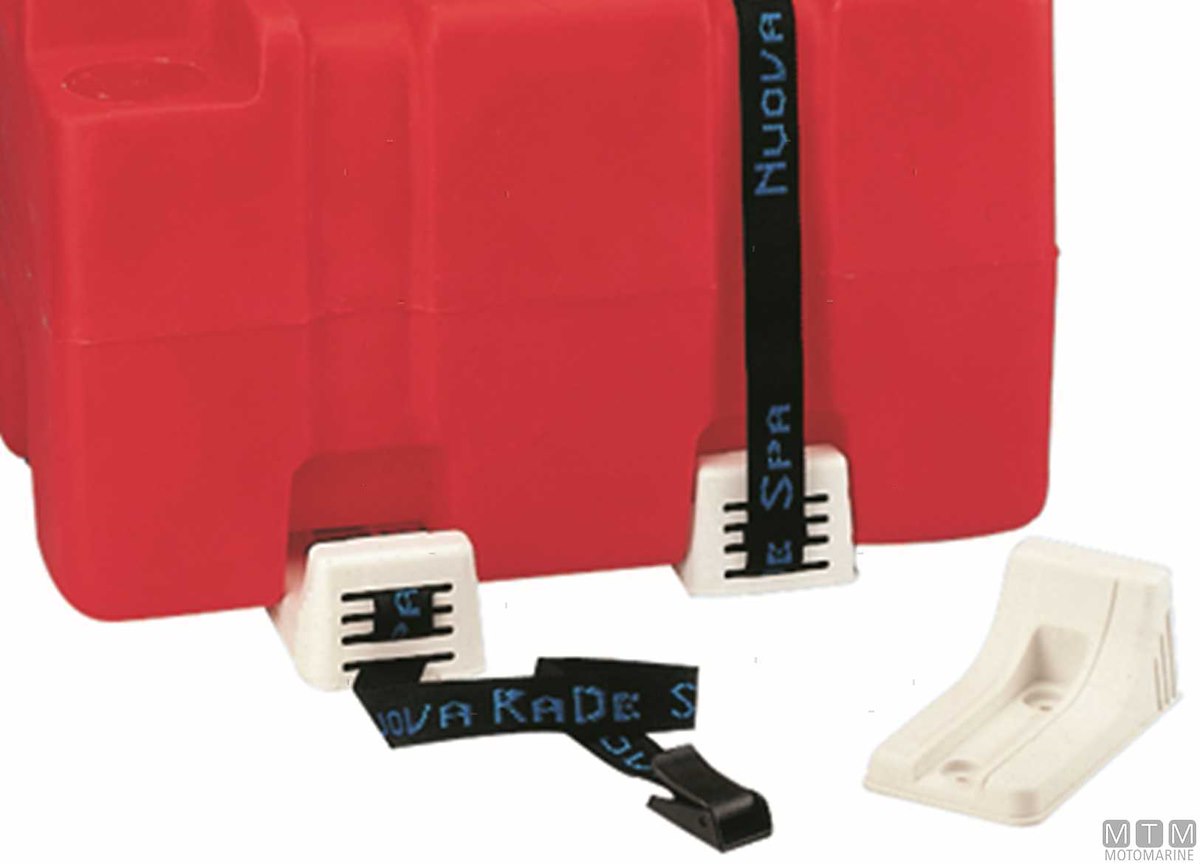 Sella in plastica rinforzata per zattere autogonfiabili completa di cinghie e fibbie a sgancio rapido lunghezza 2x2,5 metri. 4 Basi 65x110 mm con interasse fori 28 mm.