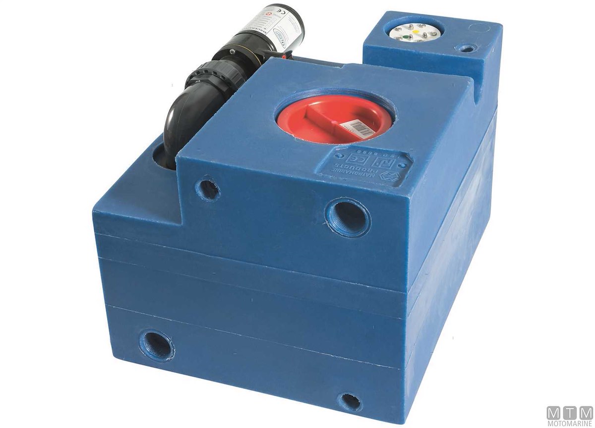 Serbatoio acque nere e grigie completo di sistema svuotamento con pompa maceratore, valvola Y-Valve, filtro antiodore e pannello livello con sonda.