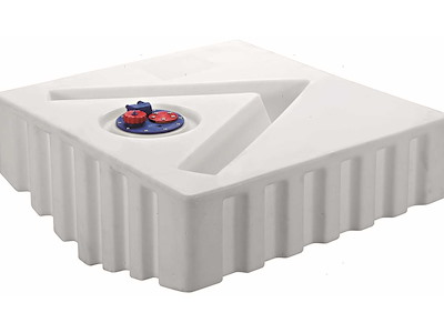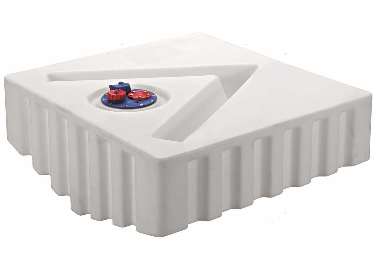 Serbatoio sagomato a fondo barca in Polietilene reticolato completo di boccaporto con sfiato da 17/19 mm, uscita con pescante da 12 mm e tappo filettato. Da completare con raccordo di carico 38/50/60 mm. Certificazione CE-ISO21487.