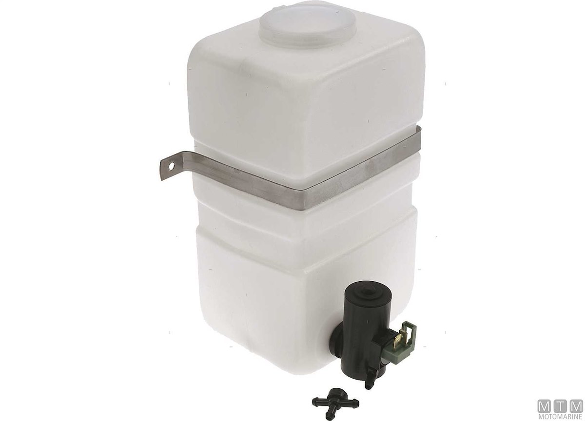 Serbatoio lavavetri Roca con pompa elettrica e raccordo a T. Fascia di fissaggio in Acciaio Inox. Dimensioni 125 x 145 x H215 mm.