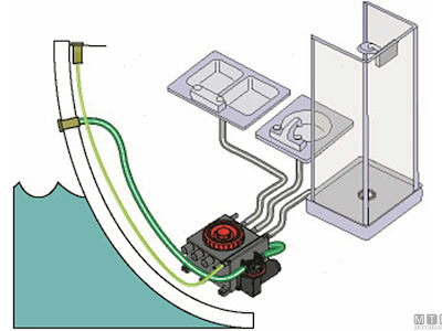 Serbatoio a pozzetto per la raccolta acque grigie di docce, lavandini e servizi. Completo di interruttore elettronico presenza acqua Johnson Ultima e predisposizione per installazione pompa Viking Power 16 (1826032/34). In alternativa può essere completato con una pompa qualsiasi 12/24V fino a 20A. Entrata ø 19/25/38 mm / Uscita ø 19/25 mm.