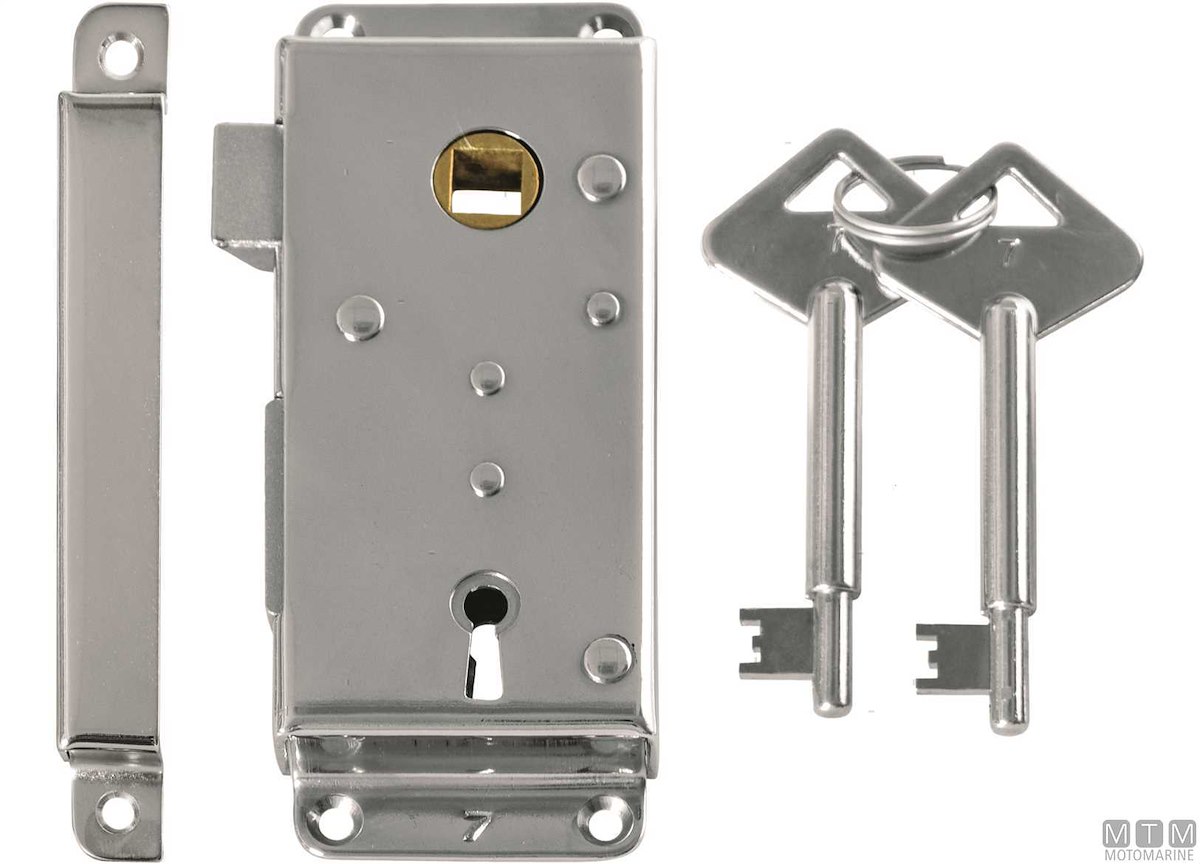 Serratura da accostare con chiavi e scontro a cassetta. Corpo in Ottone Cromato, componenti inossidabili.Maniglie da ordinare a parte.