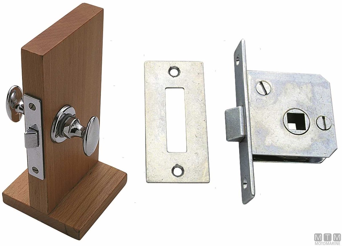 Serratura da infilare con scontro piano. Montaggio universale con mano destra o sinistra. Corpo in Ottone Cromato e componenti inossidabili. Maniglie da ordinare a parte.