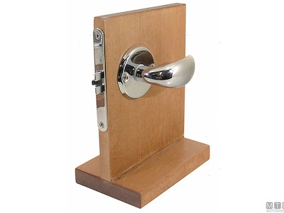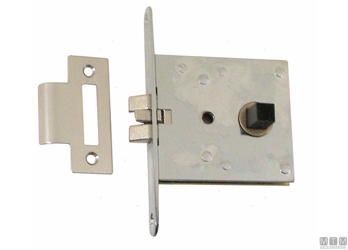 Serratura da infilare con scontro piano e scivolo antivibrante. Ideale per porte sottili, montaggio universale con mano destra o sinistra. Corpo in Ottone Cromato e componenti inossidabili. Maniglie da ordinare a parte.