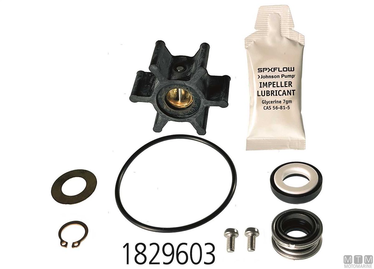 Service Kit per la manutenzione delle pompe di raffreddamento Johnson. Contiene girante, grasso lubrificante, istruzioni e altri ricambi a seconda del kit.