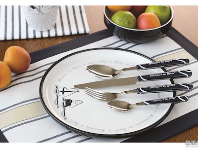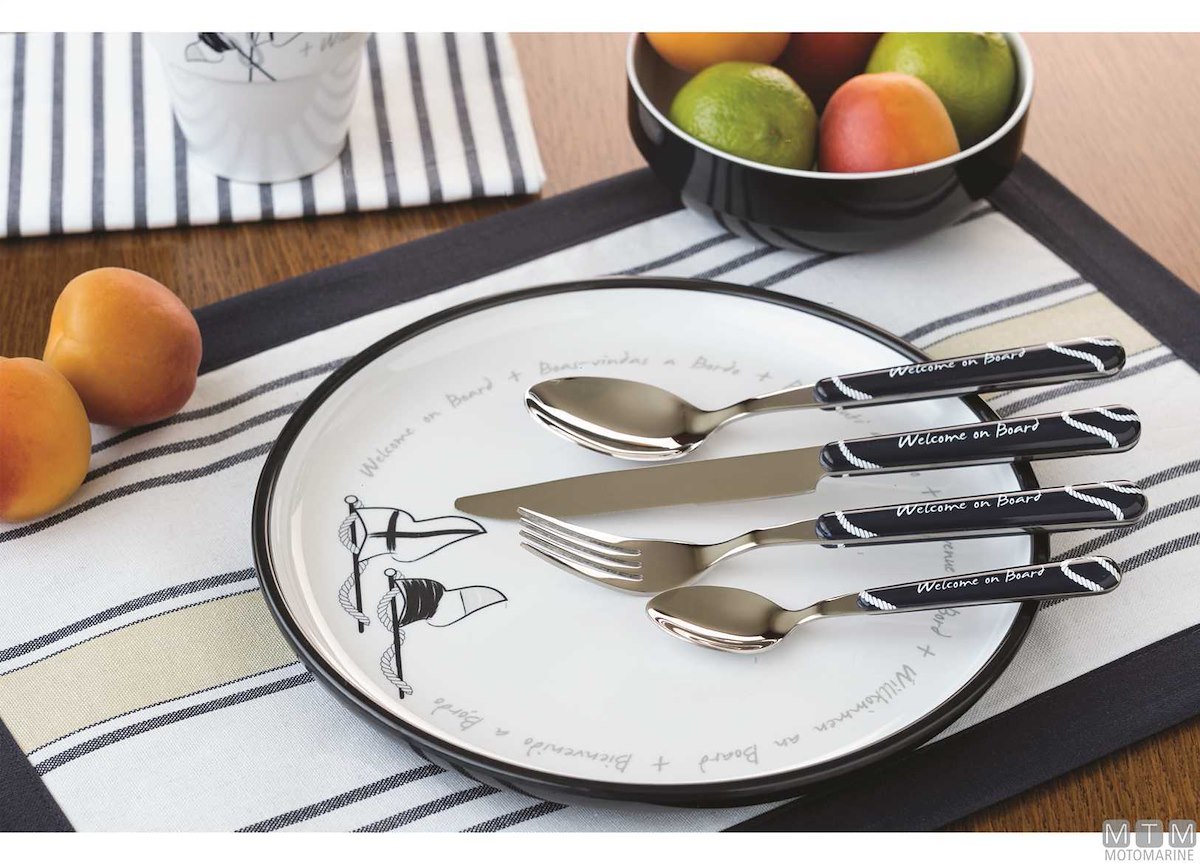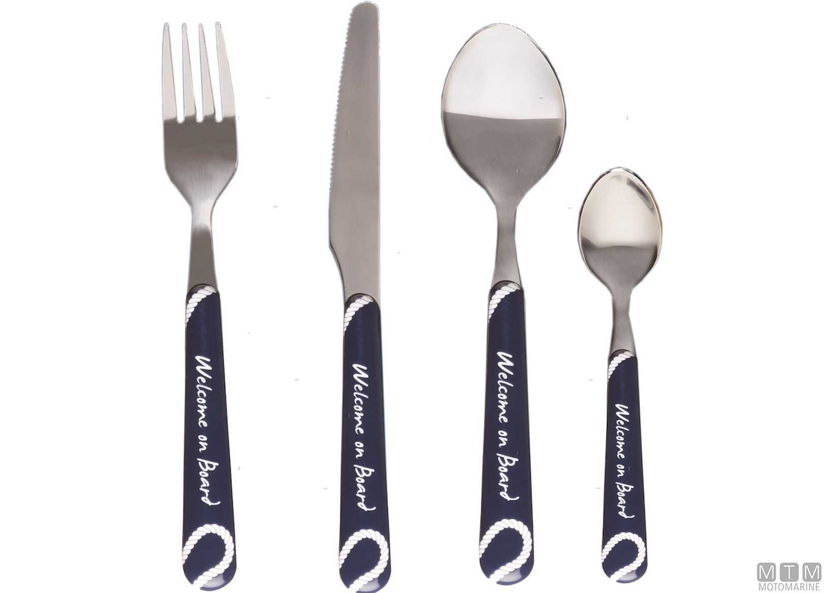Servizio posate in Acciaio Inox con decoro Welcome On Board in confezione da 6 x 4 pezzi.
