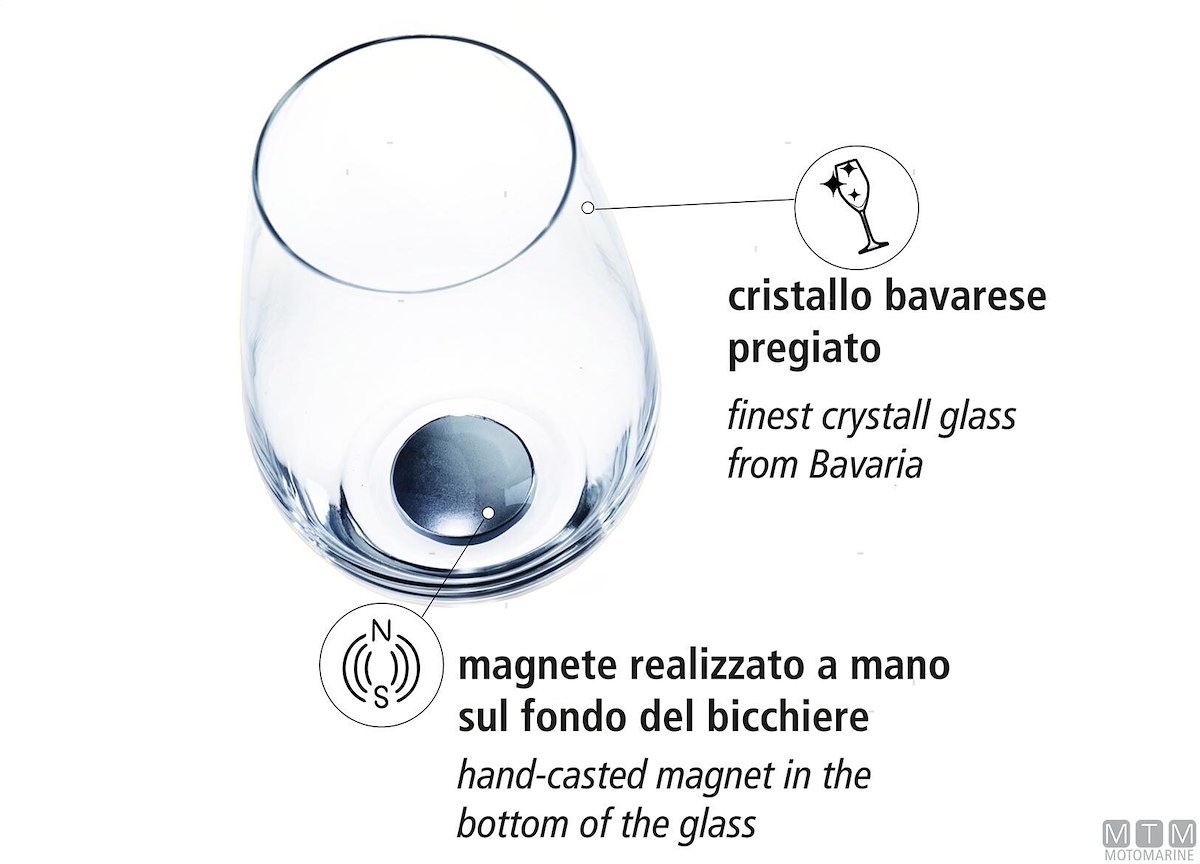 Eleganti bicchieri da longdrink Silwy in cristallo di alta qualità con pratici magneti integrati sul fondo che ne rendono sicuro l’appoggio anche quando il mare è mosso. Rapporto di tenuta perfetto tra sottobicchiere e bicchiere. I sottobicchieri metallici in nano-gel sono rimovibili, durevoli, non lasciano residui e aderiscono a tutte le superfici. Forniti in set da 2 bicchieri, compresi di sottobicchieri in nano-gel metallizzati.