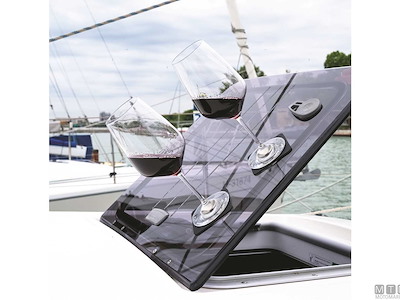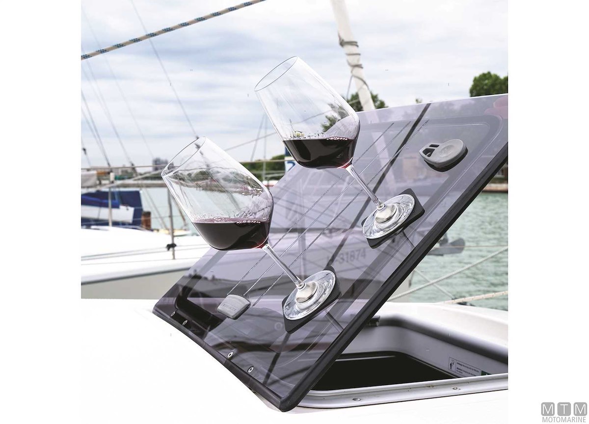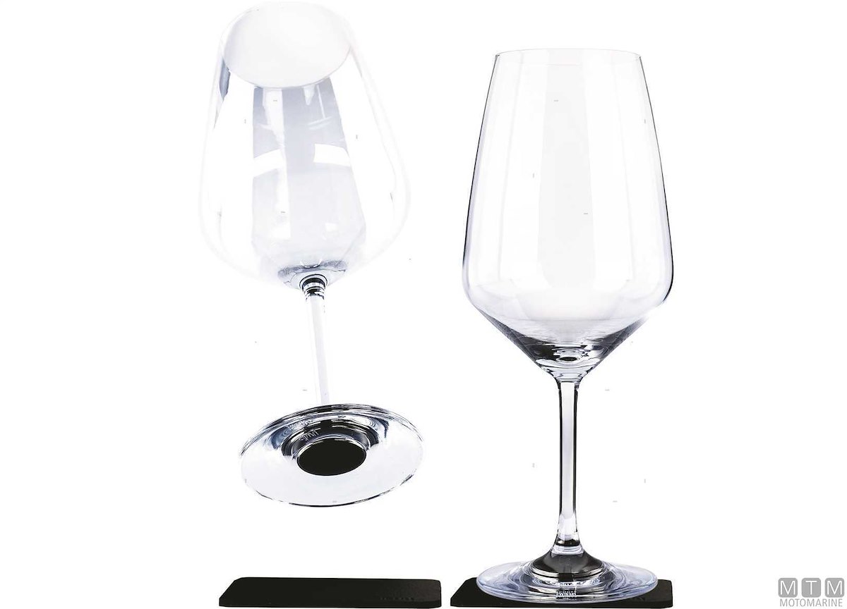 Eleganti calici da vino Silwy in cristallo di alta qualità con pratici magneti integrati sul fondo che ne rendono sicuro l’appoggio anche quando il mare è mosso. Rapporto di tenuta perfetto tra sottobicchiere e bicchiere. I sottobicchieri metallici in nano-gel sono rimovibili, durevoli, non lasciano residui e aderiscono a tutte le superfici. Forniti in set da 2 bicchieri, compresi di sottobicchieri in nano-gel metallizzati.