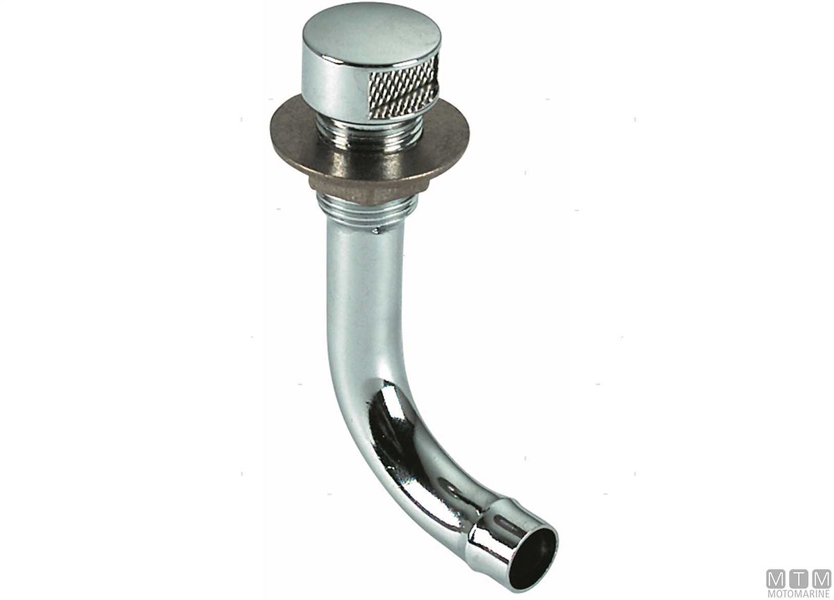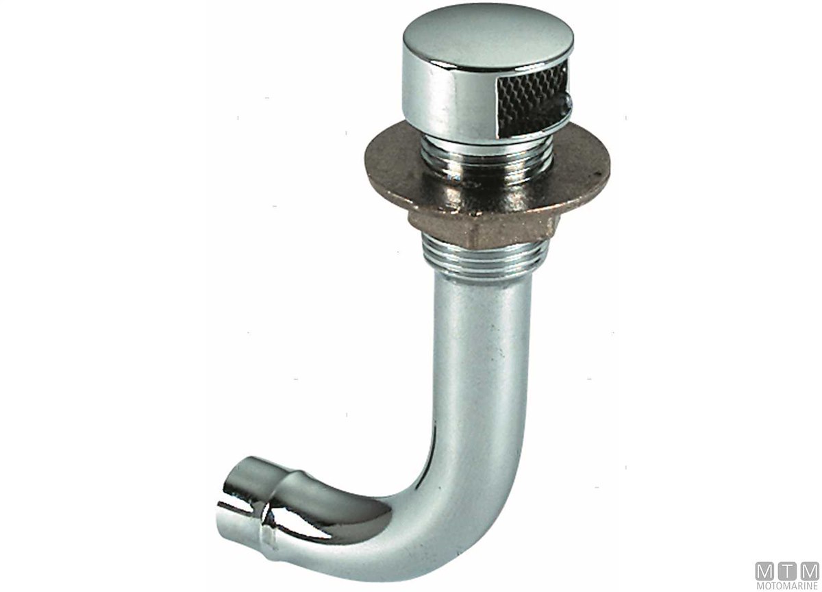 Sfiato con curva a 90° in Ottone Cromato per serbatoi. Difesa in rete Inox.