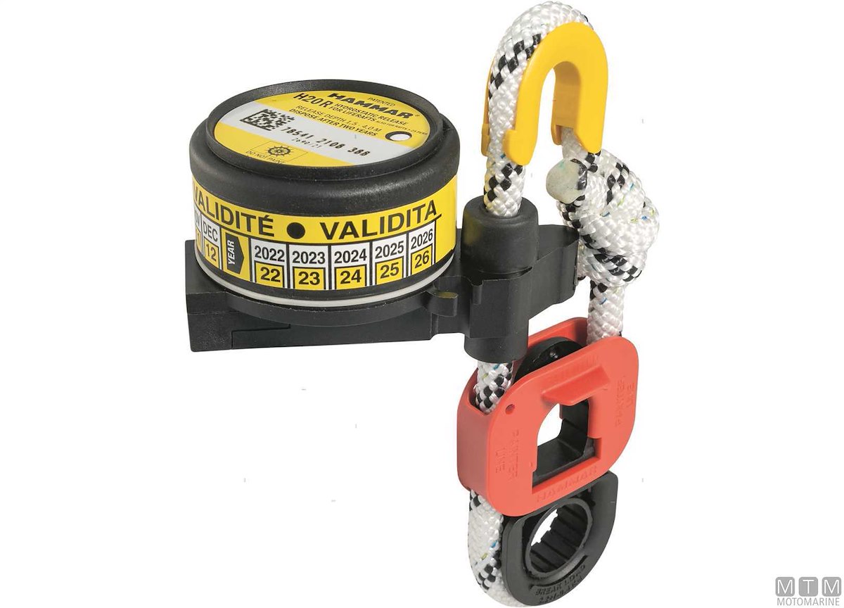Sgancio idrostatico Hammar originale H20 R per zattere autogonfiabili. Certificazione SOLAS e ISO9001 Bureau Veritas.