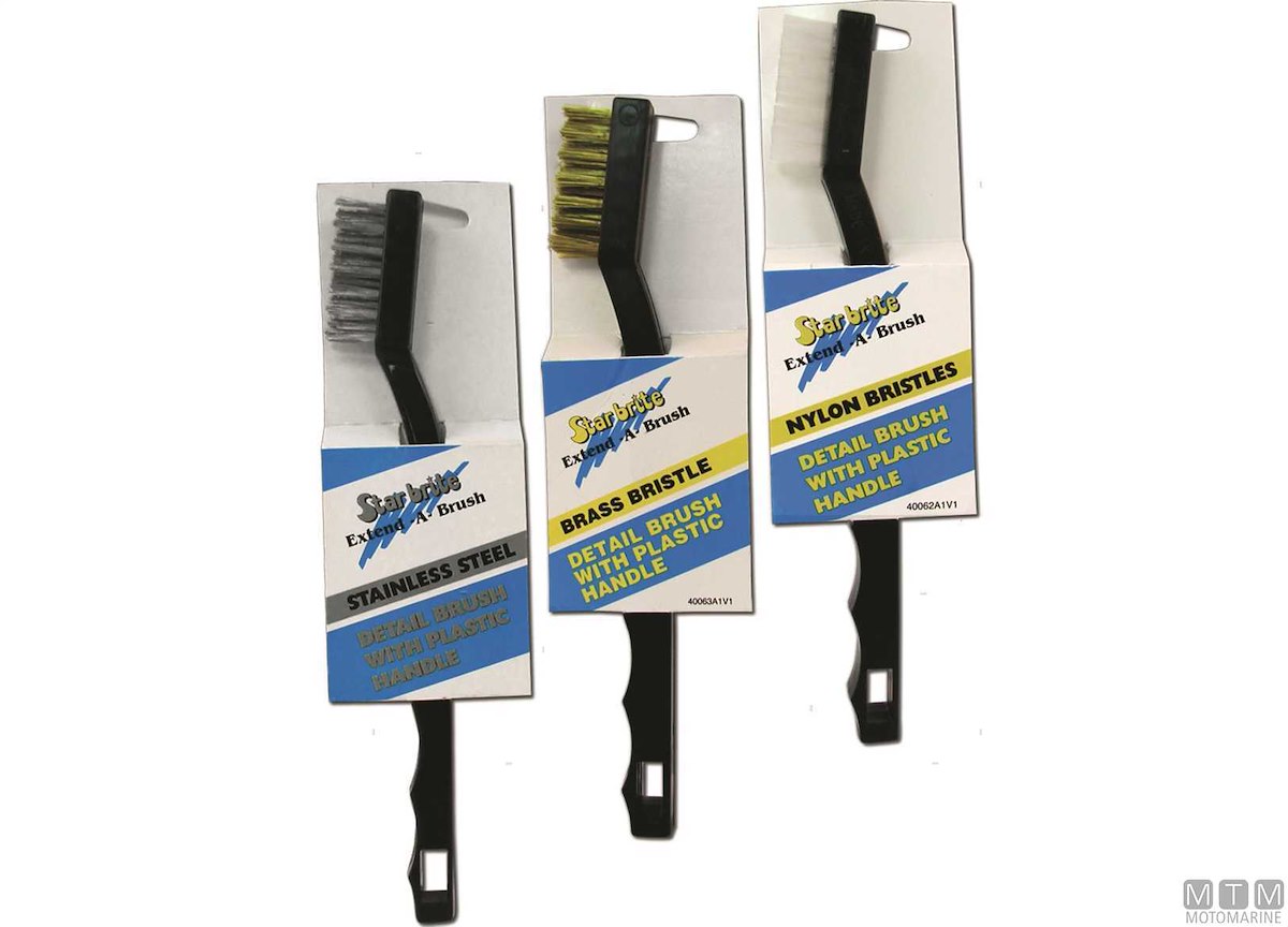 Spazzolini con vari tipi di setola per pulizia e lavori di precisione. Lunghezza 20 cm.