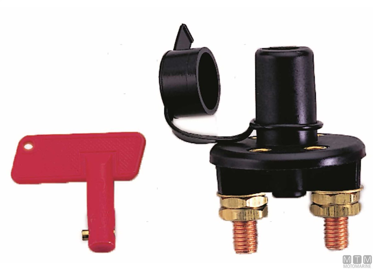 Staccabatterie 100A in Nylon rinforzato con cappuccio impermeabile. Dia collo 23 mm, H totale con chiave inserita 106 mm.