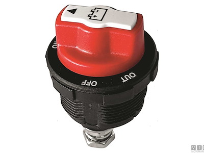 Staccabatterie con comando a manopola removibile, montaggio a parete o su piano.