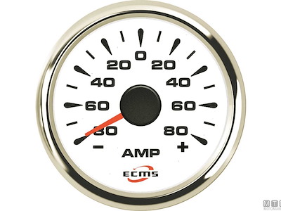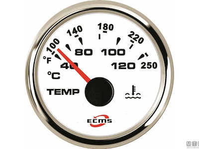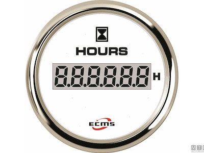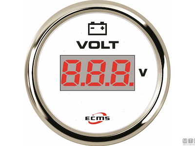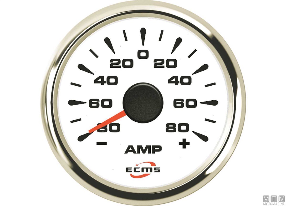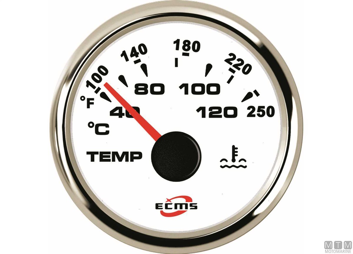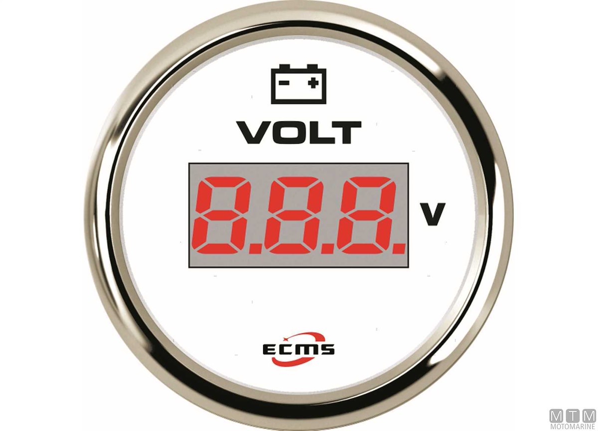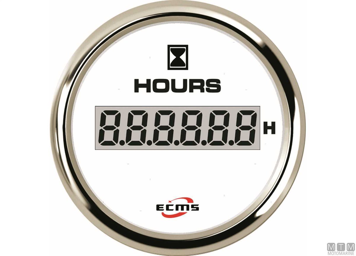 Strumentazione Ecms White Chrome 9-32V completa di cavetti con connettore Molex, cornice in Acciaio Inox 316 con finitura cromata e frontalino impermeabile IP67 con lente bombata anti-appannamento. Quadrante retroilluminato con luce LED personalizzabile in vari colori.