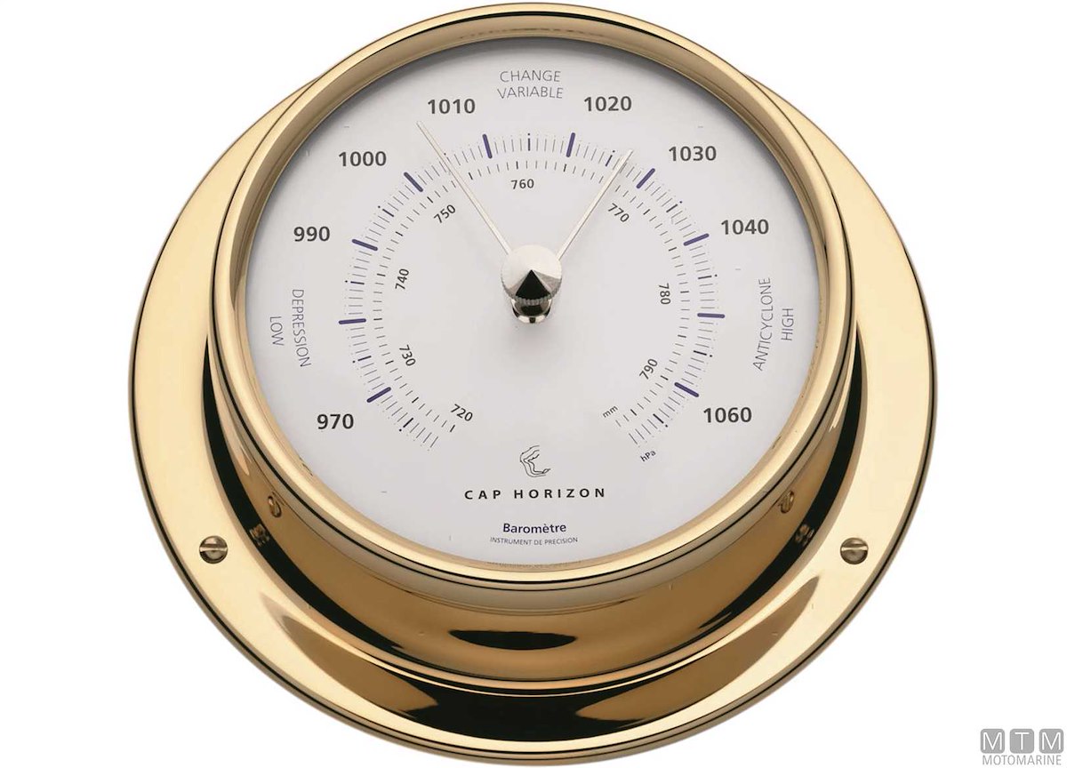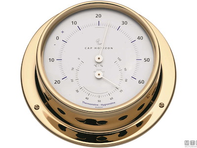 Strumenti meteo Cap Horizon (by Barigo) con cassa in Ottone Lucido e quadrante bianco.