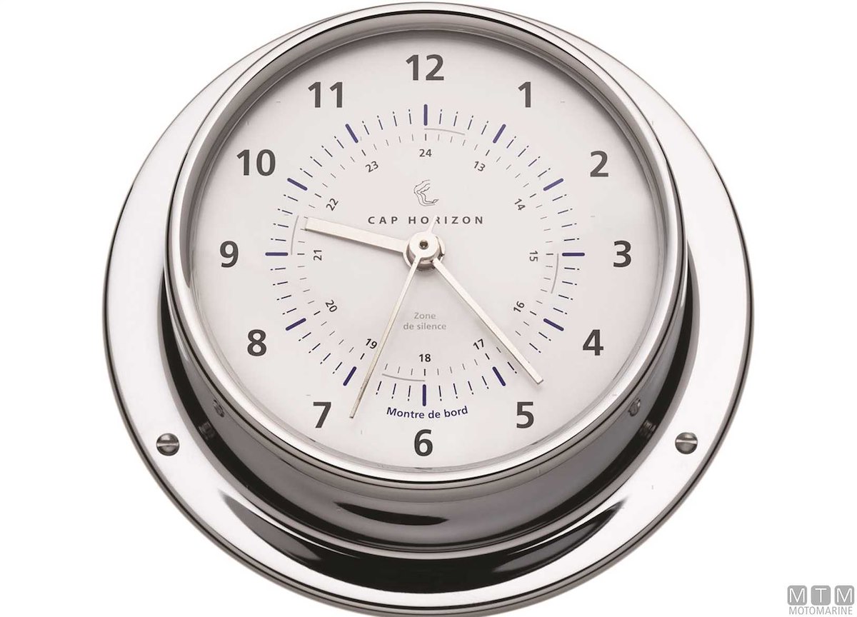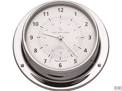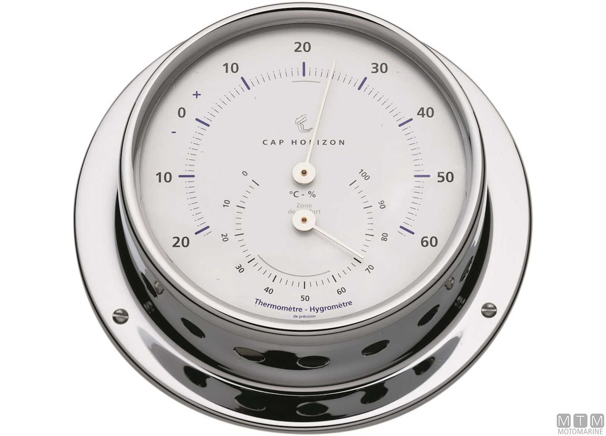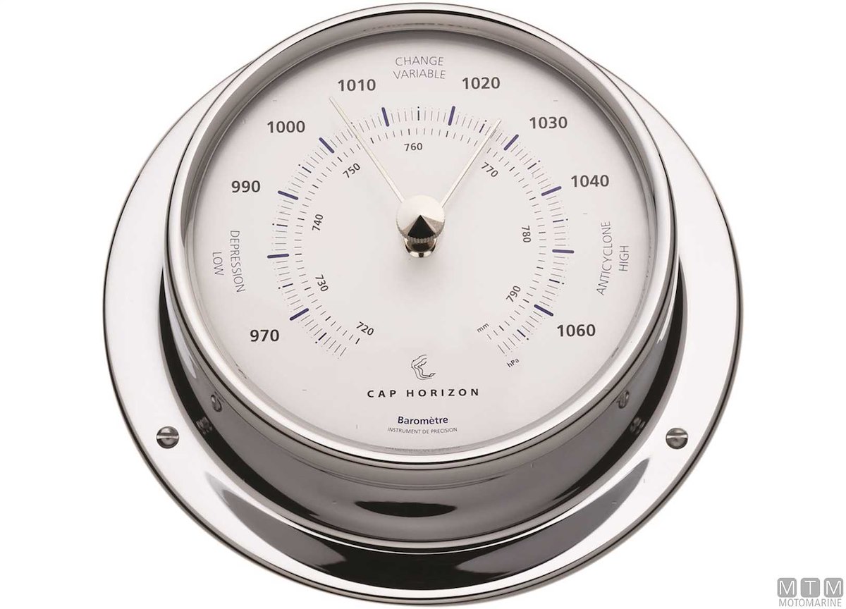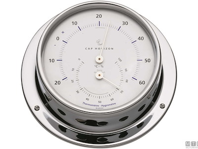 Strumenti meteo Cap Horizon (by Barigo) con cassa in ottone cromato e quadrante bianco.