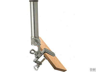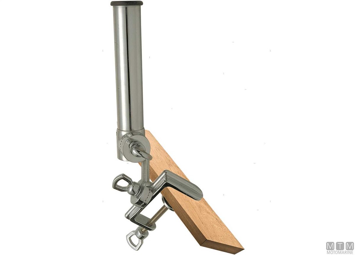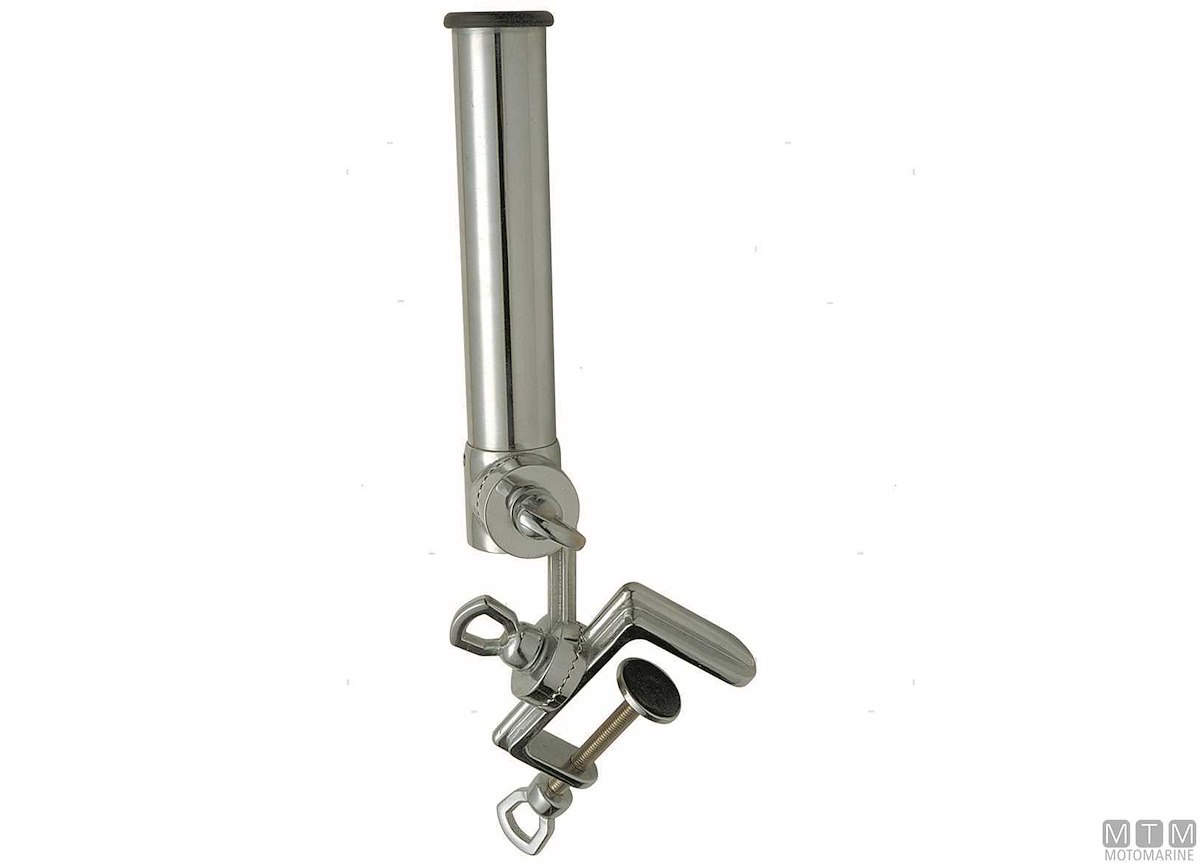Supporto portacanne orientabile in Ottone Cromato con morsetto a doppio snodo e boccola in gomma a protezione della canna.