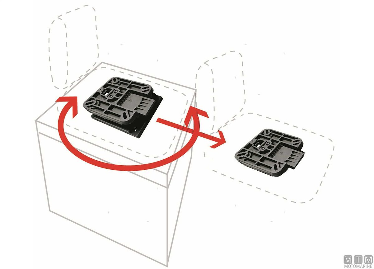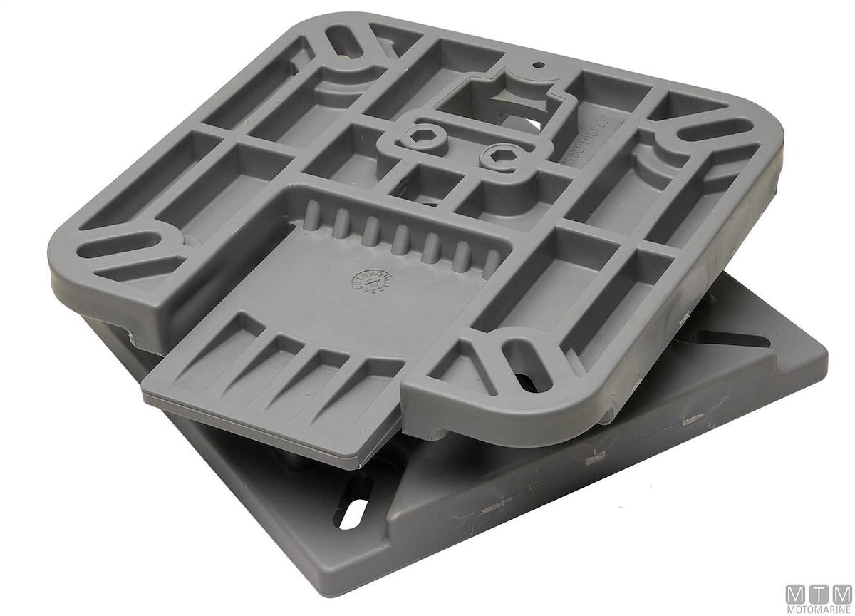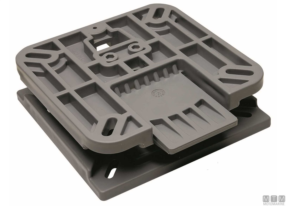 Supporto sedile estraibile e girevole in Plastica rinforzato. Per montare e togliere velocemente sedili su piani e gavoni. Indicato per montare sedili in più postazioni. Interasse diagonale fori da 165 a 200 mm.