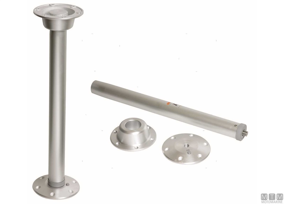 Supporto tavolo scomponibile in Alluminio Anodizzato satinato. Base a filo sistema Twist-Lock (non occorre forare il pavimento) con 6 fori (interasse 145 mm). Altezza 70 cm.