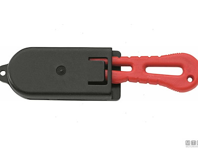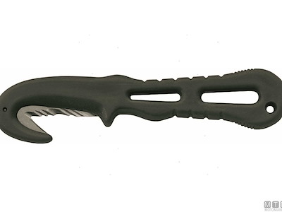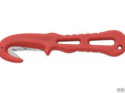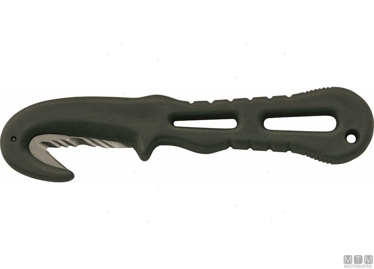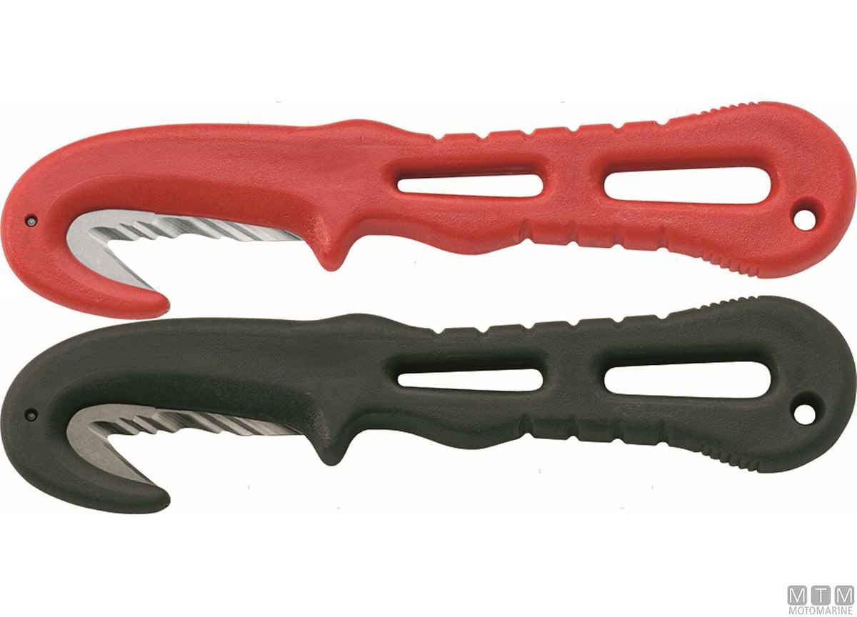 Lama tagliasagole contornata da una protezione in Plastica. Completa di fodero. Permette di tagliare in totale sicurezza sagole e cinghie di qualsiasi tipo.