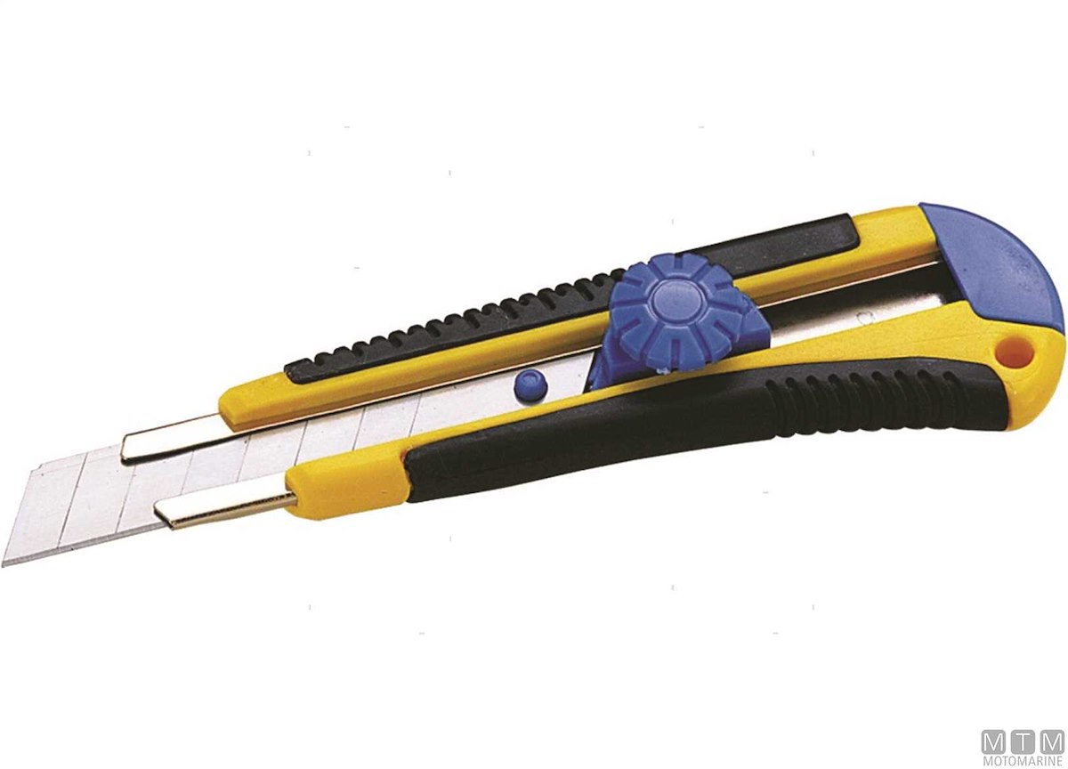 Taglierino da lavoro con lama grande H18 mm, guida in metallo e fermo lama a vite. Lame ricambio in confezioni da 10 pezzi.
