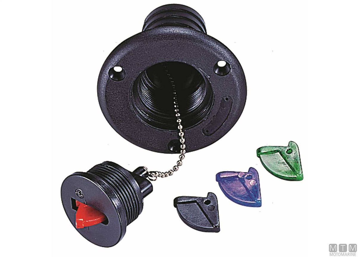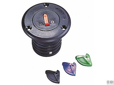 Tappi imbarco multiuso in Nylon rinforzato. Forniti con levette Rossa-Nera-Blue-Verde e etichette Diesel-Fuel-Gas-Petrol-Water-Waste.