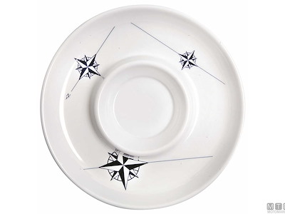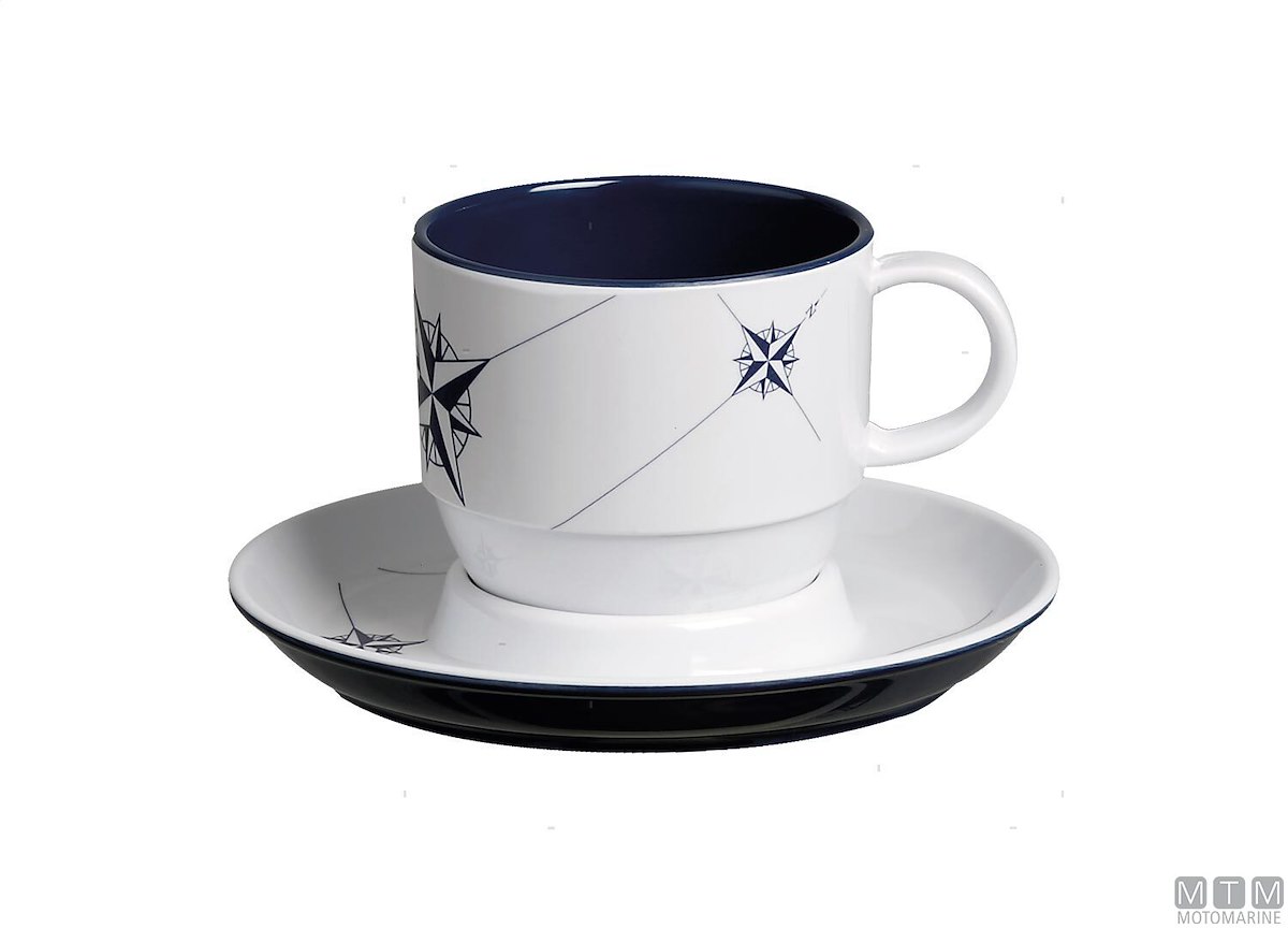 Tazzina da tè con piattino con decoro Northwind in confezione da 6 pezzi. In Melamina garantita 100% per uso alimentare. Lavabile in lavastoviglie, infrangibile e anti-macchia.