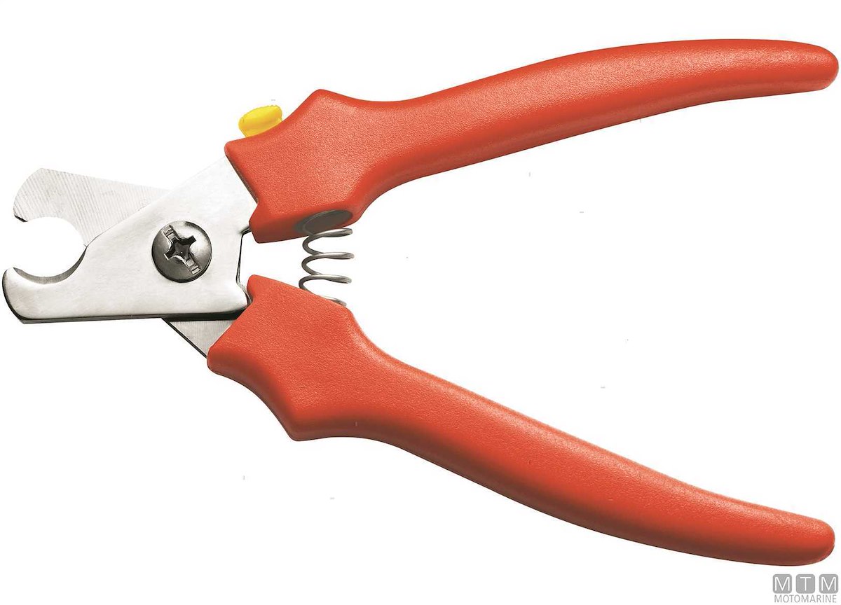 Tenaglia tagliacima di sicurezza galleggiante con molla ad apertura e blocco. Manico in PP, tenaglie in Acciaio Inossidabile W1.4028.