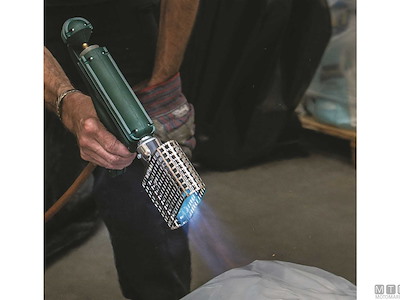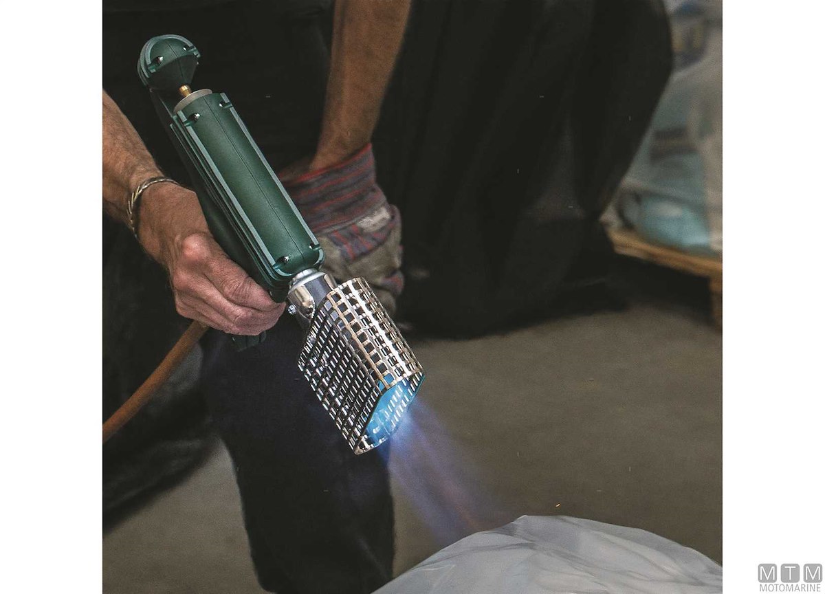Termopistola a gas propano per la termoretrazione dei teli di copertura in Polietilene. Robusta, leggera e maneggevole, pesa solo 1 kg. Bassi consumi e grande resa con una potenza continua di 32 kW/h effettivi. Accensione piezo con dispositivo di sicurezza integrato, una volta rilasciato il grilletto si spegne automaticamente.Completa di regolatore di pressione e 8m di tubo in gomma. Certificato CE EN 746 Standard, 1 anno di garanzia.