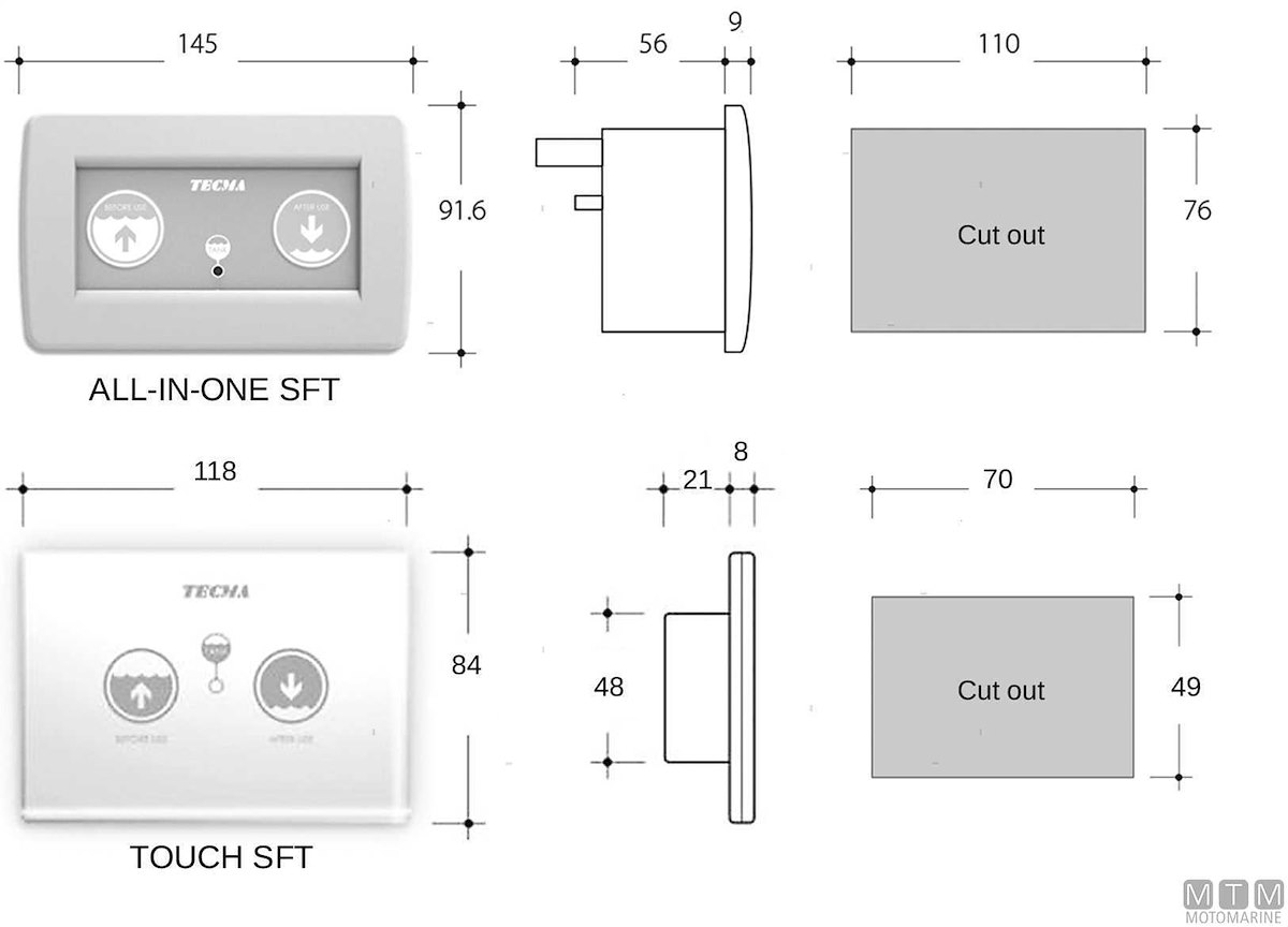 Completa di pannello a due pulsanti All-in-One SFT con funzione carico/scarico Smart Flush, spia serbatoio acque nere e protezione fuoriuscita acqua di carico.