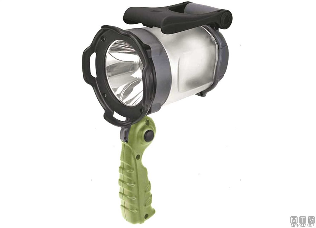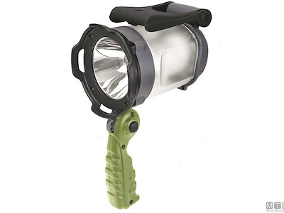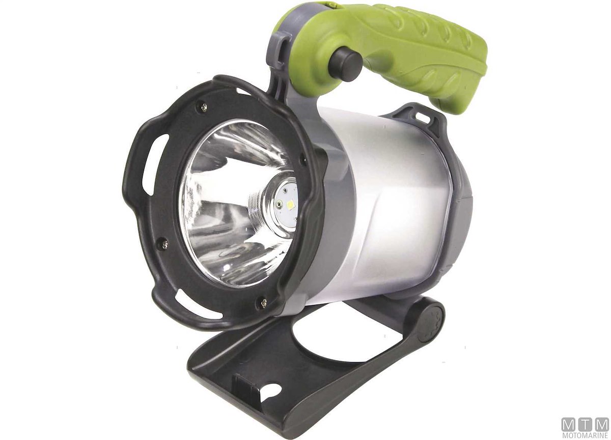 Torcia LED in ABS rinforzato con manico ergonomico regolabile fino a 90° e piedistallo a scomparsa. 3 tipi di luce settabile: Alta intensità (850 lumen) - Lampeggiante (220 lumen) - Media intensità (220 lumen). Autonomia massima a media intensità di 3,5 ore. Funzione Power Bank da 2400mah.
