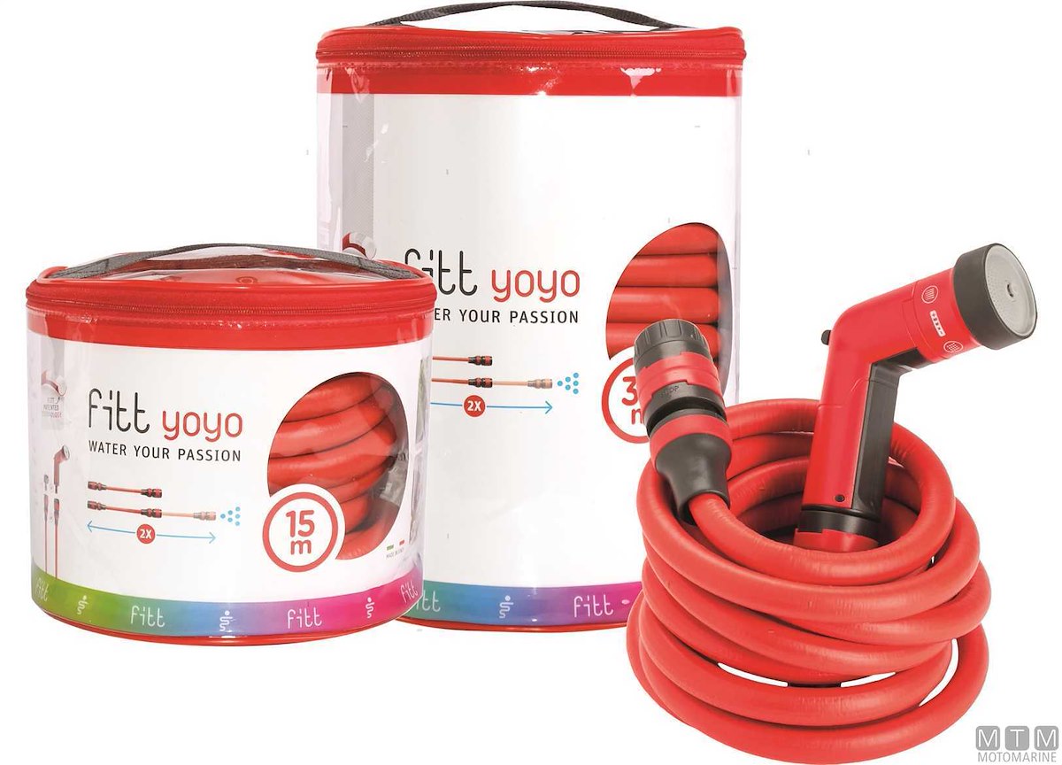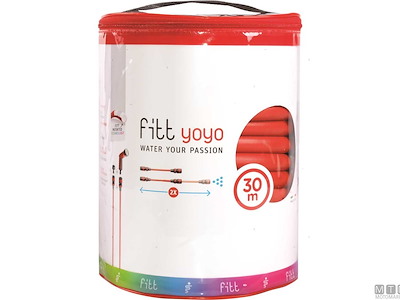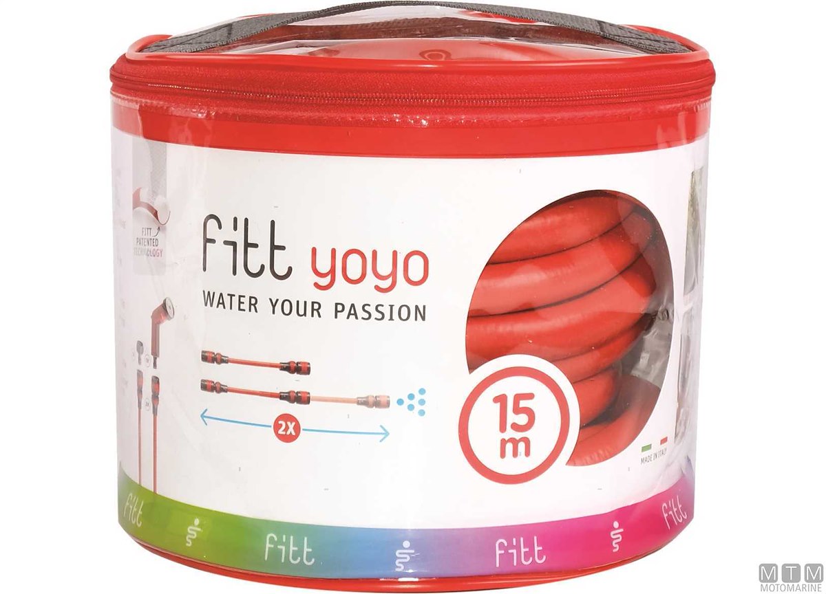 Tubo acqua estensibile Yoyo leggero, compatto e maneggevole. La confezione è composta da un tubo completo di raccordi e pistola multi-getto. Grazie alla sua speciale fabbricazione il tubo non si attorciglia e non si strozza garantendo un costante flusso d'acqua. Una volta in funzione il tubo si allunga di circa il doppio della sua lunghezza originaria. All'acquisto di 24 pezzi in regalo l'espositore Fitt.