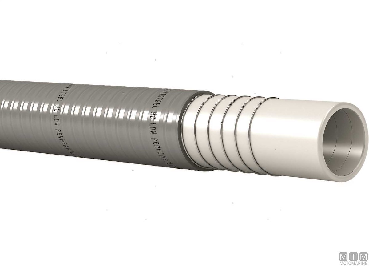 Tubo per scarico acque nere, flessibile e antiodore con struttura a doppio strato e rinforzo ultraflessibile in filo d'acciaio. Il doppio strato è composto da una mescola interna in PVC altamente impermeabile agli odori e una copertura esterna resistente ad agenti atmosferici, ozono e raggi UV.