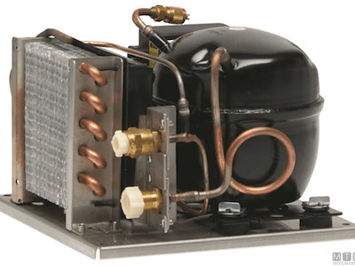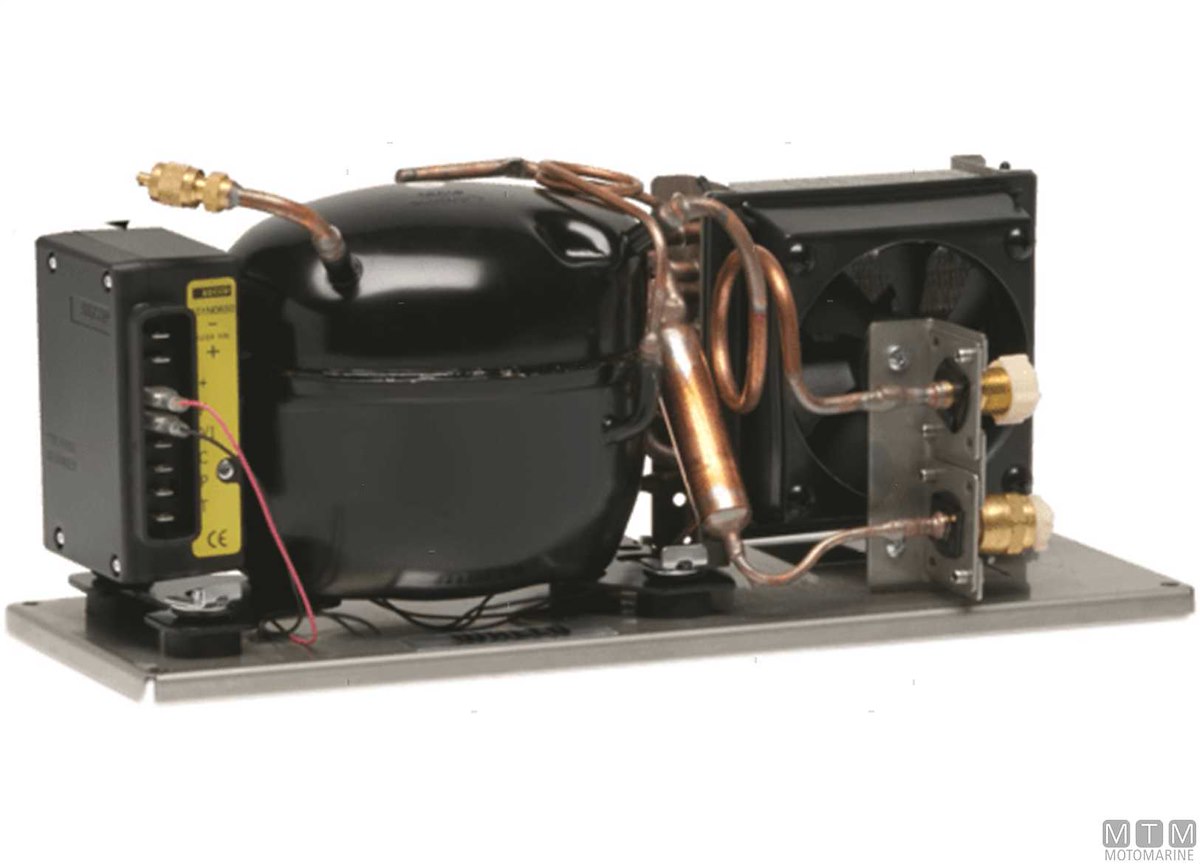 Unità refrigerante molto silenziosa dotata di regolazione della potenza, refrigerante pre-caricato e accoppiamenti a valvola auto-sigillanti per un facile montaggio. Piastra di montaggio in Acciaio Inox anti-corrosione per una lunga durata. Per gruppi frigo composti da: